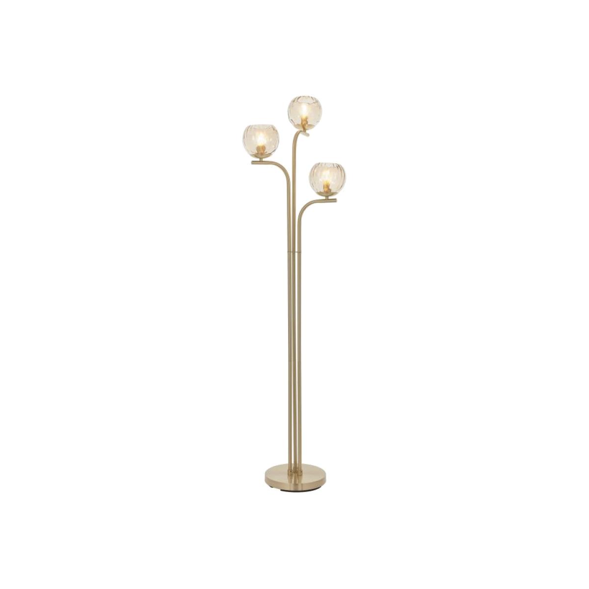 Champagne lustre glass meets modern brushed brass plating in a combination of modern classic styling. This stunning floor lamp is the perfect addition to your modern home. Add a touch of style to your interior with a matching ceiling light, wall light and table lamp. Ideal when paired with up to date LED filament lamps. Colour: Brass. Lamp Holder Type: E14. Bulb Type: Golf Ball. Maximum Bulb Wattage: 25. Bulb Included: No. Number of Bulbs: 3.