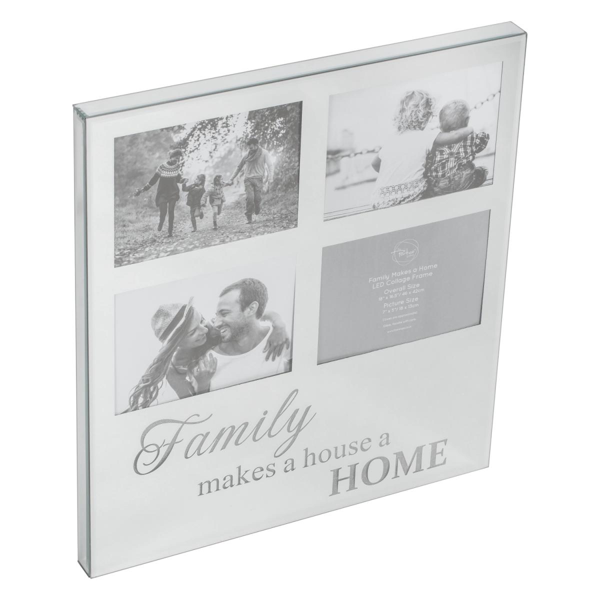 This gorgeous Family Makes a Home LED Collage Frame offers space for four images of you and your loved ones together. Its heartwarming message of 'family makes a house a home' beautifully illuminates with white LEDs, shining a light on fond memories.