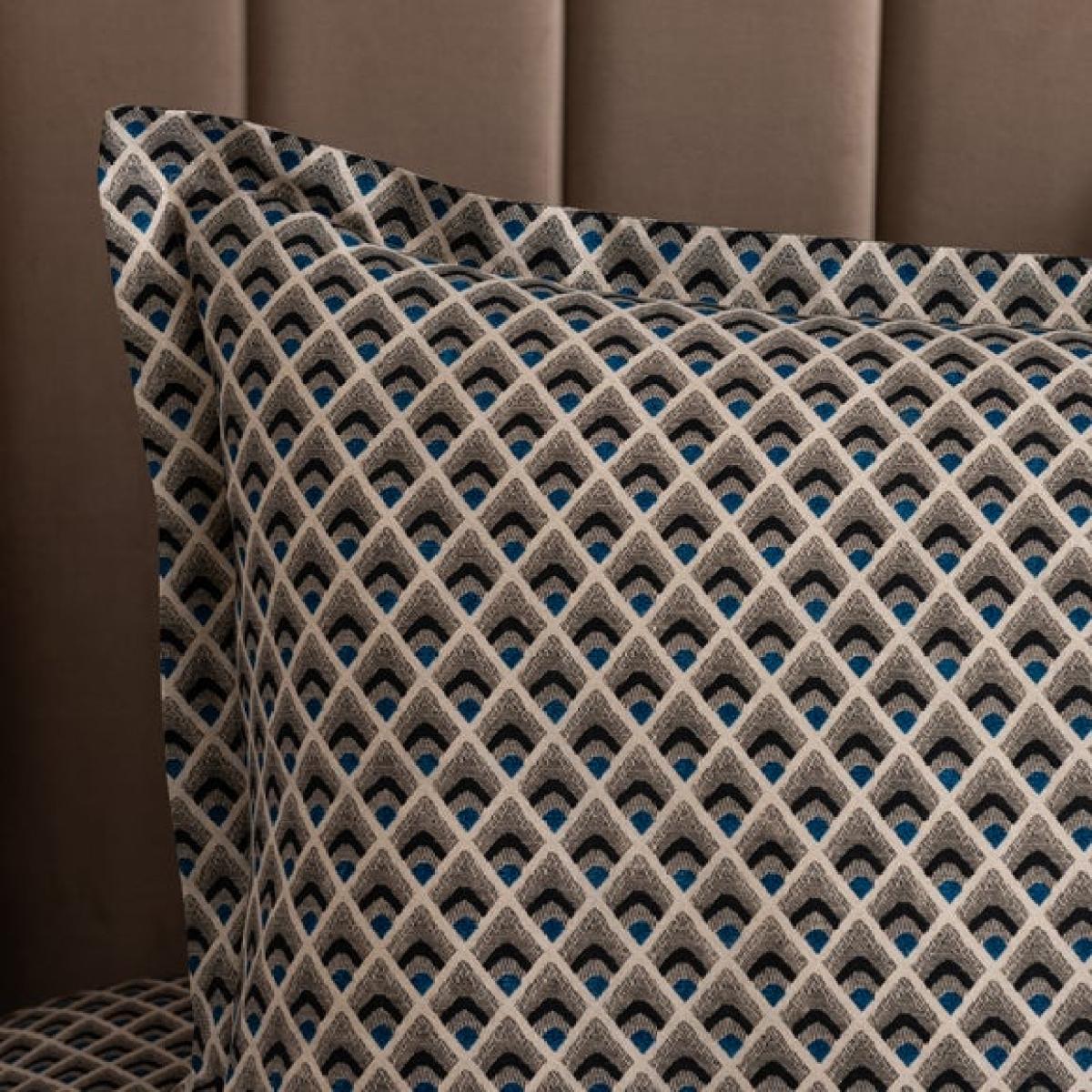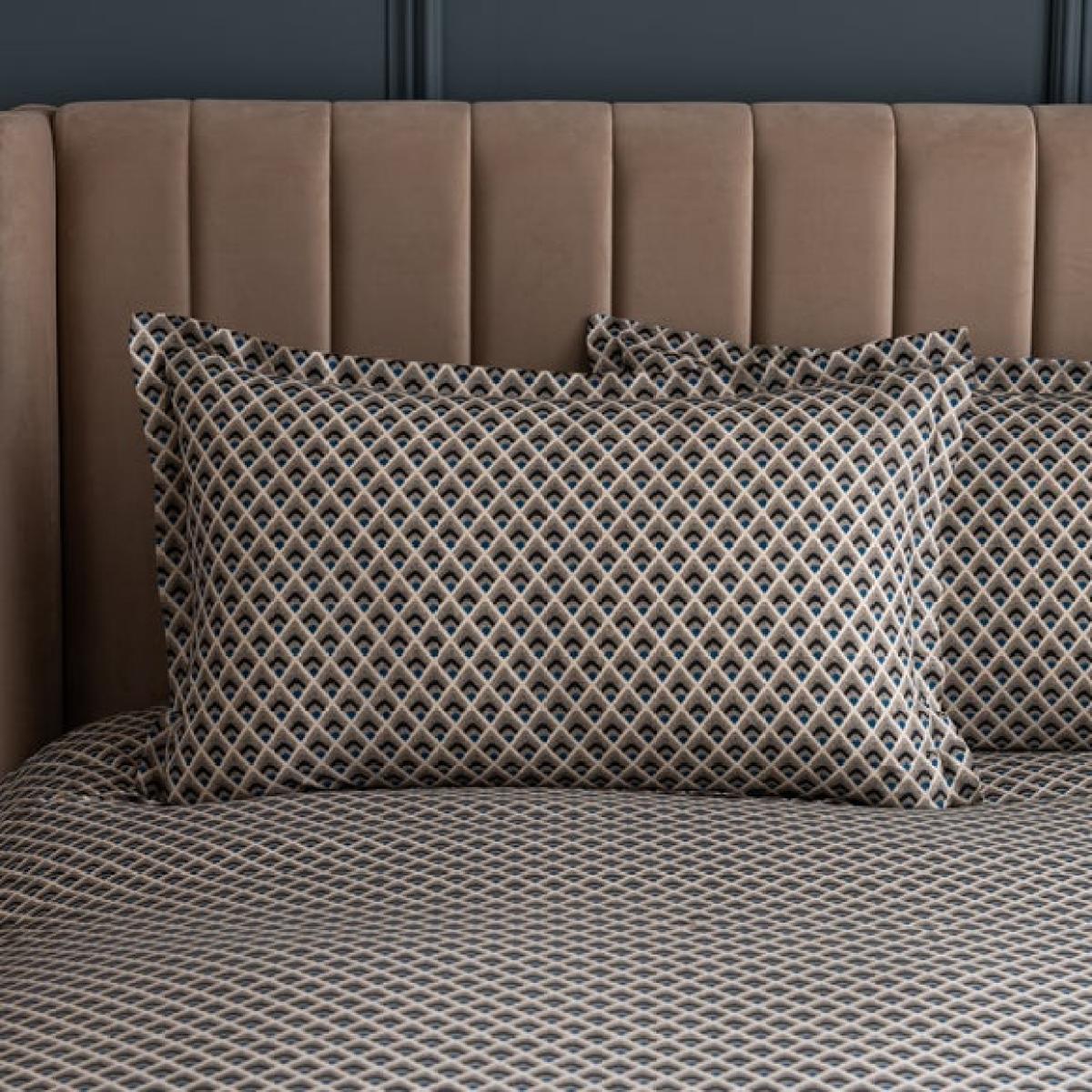 I love the Fan Deco pillowset for its classic yet contemporary look, thanks to the stylish geometric pattern and crisp cotton Oxford fabric. It works particularly well in both modern and traditional interiors-pair it with neutral tones for a sophisticated feel or mix with bolder colours for a more eclectic vibe. Practical styling tips include layering it with plain or subtly patterned cushions to create visual interest, and its durable cotton makes it a great choice for everyday use. It’s a versatile piece that adds a touch of understated elegance to any bedroom scheme.