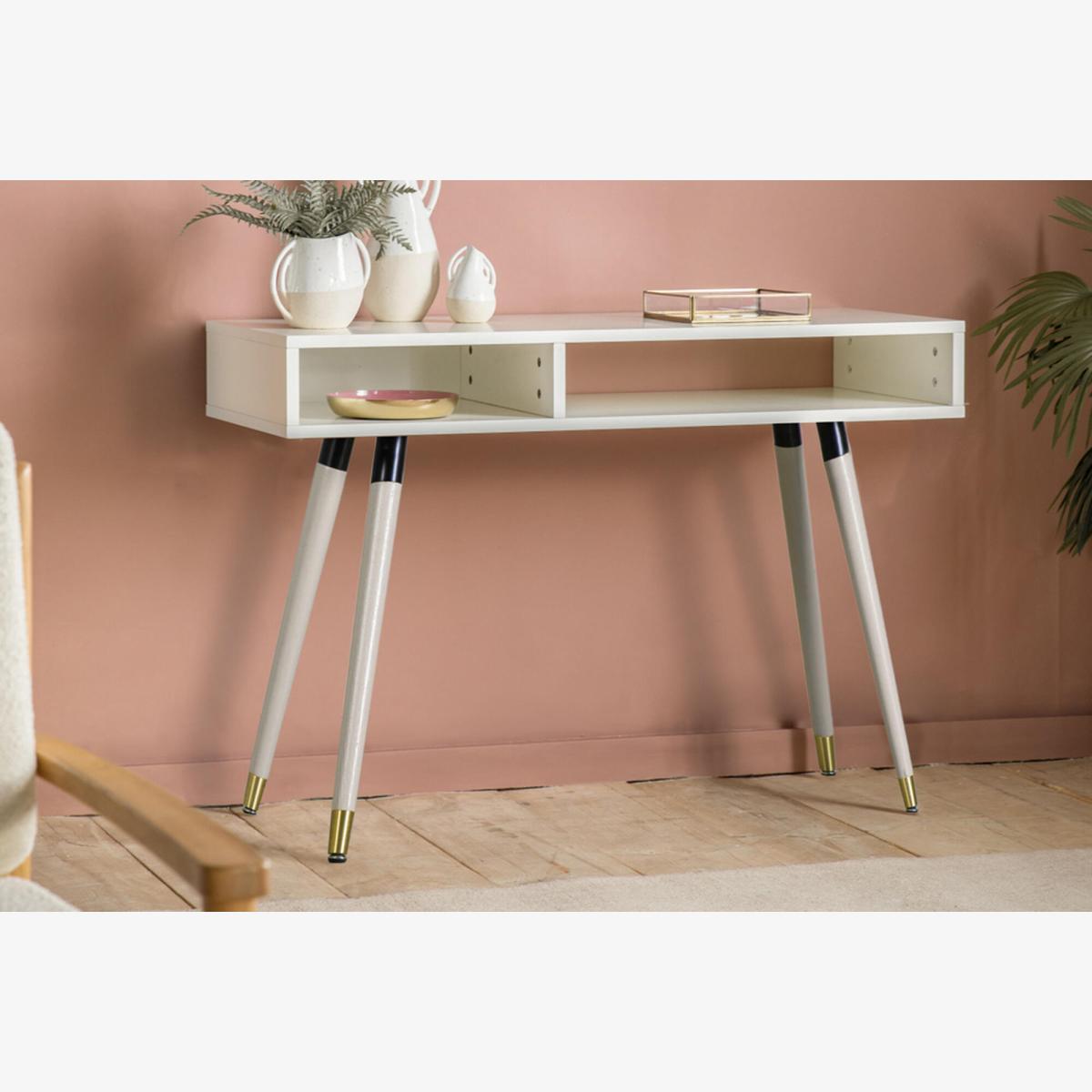 I really love this piece because of its sleek, vintage-inspired design that works well in a range of interiors, from contemporary to retro. It’s an ideal entryway table or a spot behind a sofa, offering both style and storage without cluttering the space. When styling it, consider adding a statement lamp or a few decorative objects, like vases or candles, to create visual interest. To keep it practical, use the open shelf for everyday essentials or display favourite ornaments, and keep the top clear for a tidy and inviting look. Its clean lines and subtle colour make it versatile, so don’t be afraid to pair it with bolder accessories for a more personalised touch.