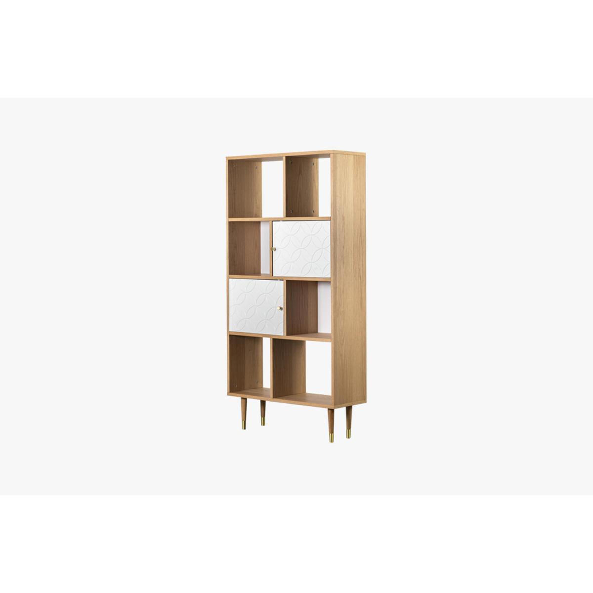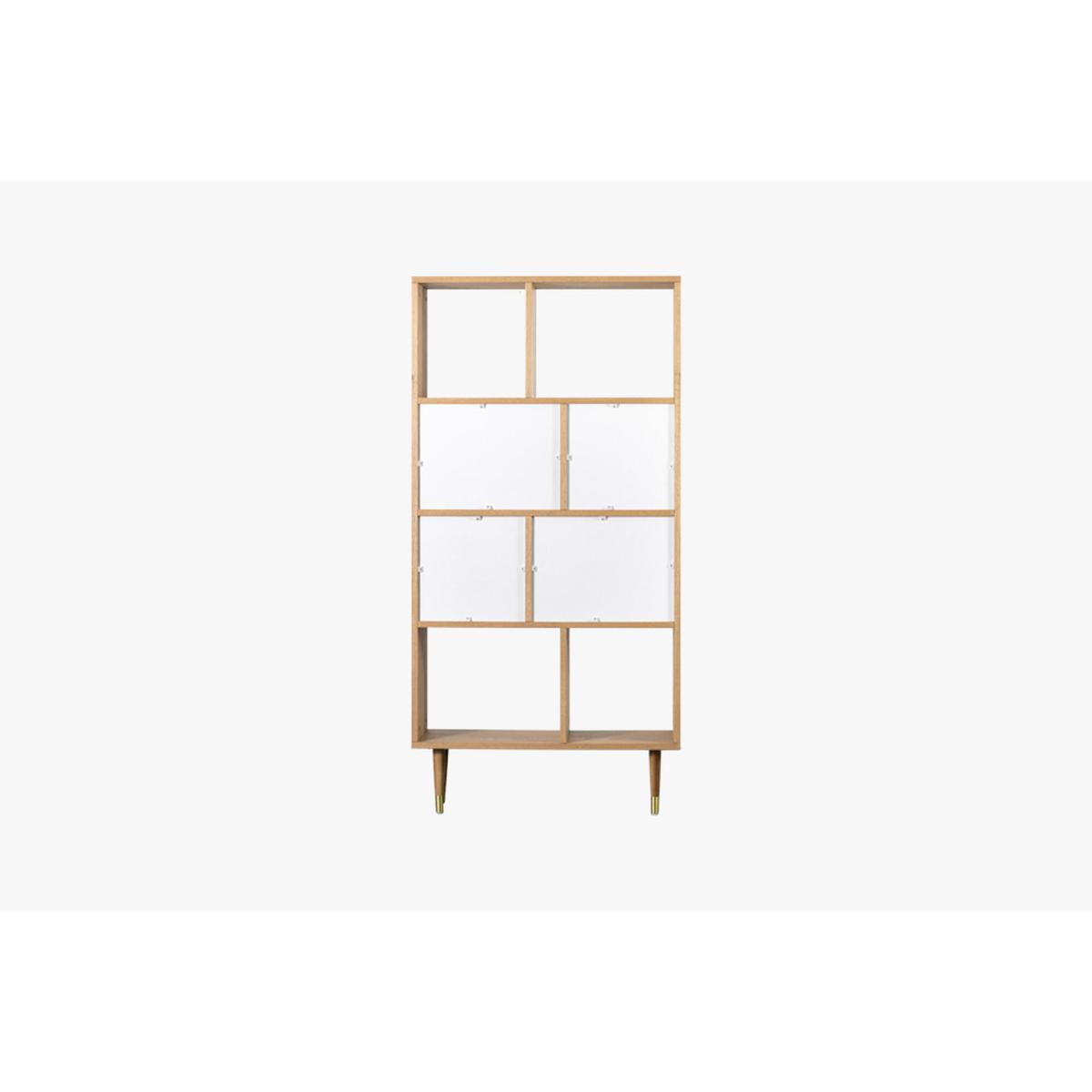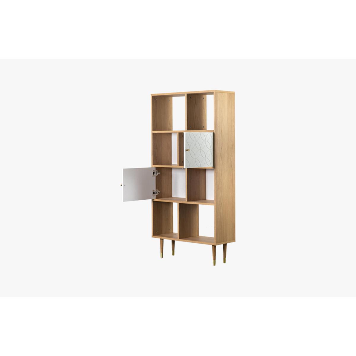I’d call this the fandangle shelf, and what stands out is its mix of open cubbies and concealed grey-fronted compartments - perfect for a living room, home office or hallway. Its clean lines and neutral finish suit Scandi, contemporary or pared-back urban interiors. Styling tip: balance books and decorative pieces in the open sections, add a small plant or sculptural object in every other cubby, and use the closed doors to hide clutter or store household bits in matching baskets. Keep accessories to a handful of colours or materials to avoid a busy look.