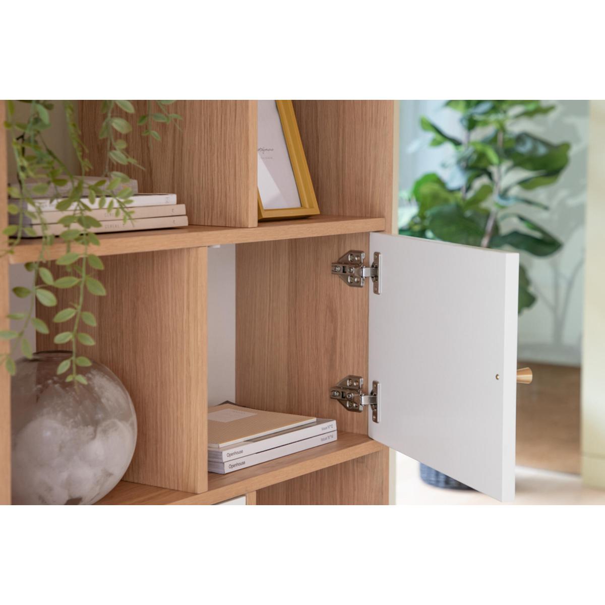 I love this unit because of its modern, geometric design that offers both open and closed storage options, making it versatile for various styling approaches. It works particularly well in contemporary interiors, as well as minimalist spaces, where its clean lines can be fully appreciated. To style it effectively, consider layering books and decorative objects with a mix of textures and colours to create visual interest. Using the open shelves for statement pieces or curated collections can help personalise the space, while the closed sections are perfect for keeping clutter out of sight, maintaining a tidy look. Pairing it with light, natural finishes or adding accent colours can also help the Fandangle fit seamlessly into different colour palettes.