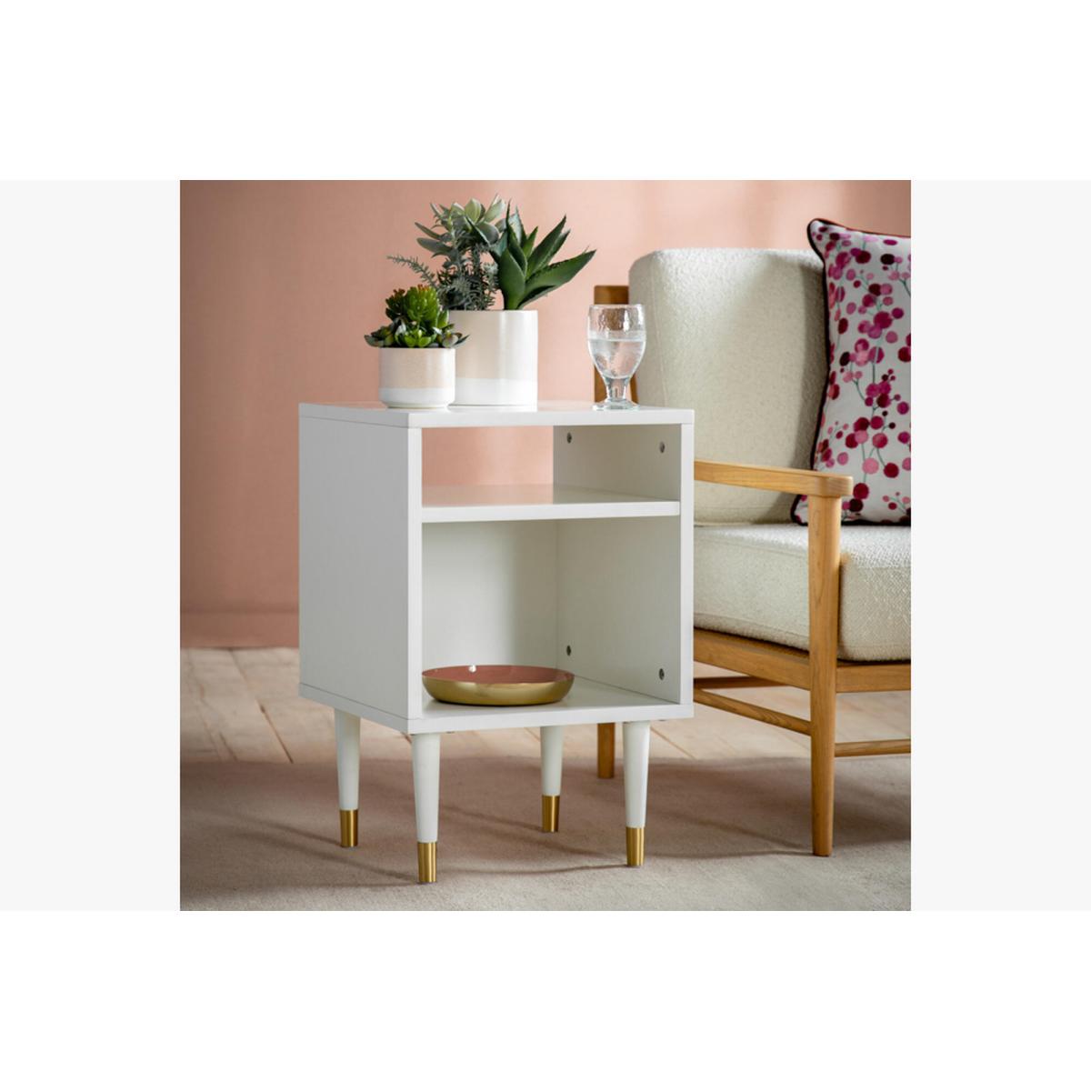 I love the Fandangle side table for its clean, streamlined look and versatile colour that works well in a variety of interiors. Its minimalist design makes it ideal for contemporary, scandi, or even eclectic spaces, adding a touch of brightness without overwhelming the décor. Practical styling tips include using it as a nightstand in a bedroom, or as a side table in a living room filled with books, a lamp, or small decorative objects. Its compact size also works well in smaller spaces, and the neutral white finish allows you to easily mix in colour and texture through accessories or surrounding furnishings. The slightly tapered legs with brass ends add a subtle touch of elegance that can elevate a simple space effortlessly.