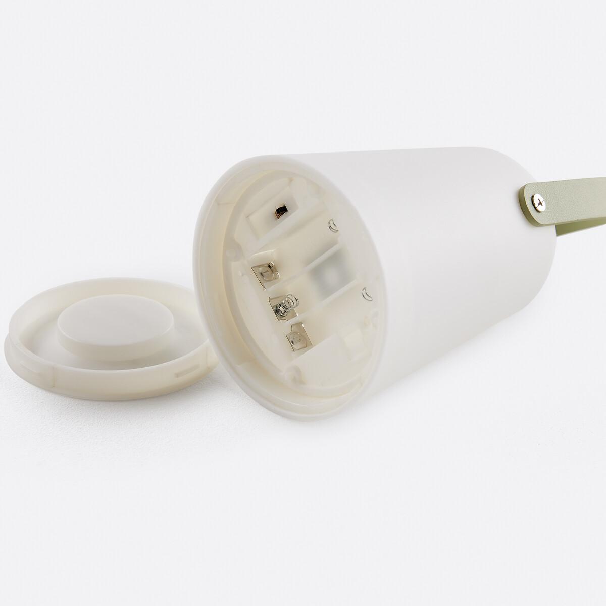 Sleek and portable, the Fanosa lantern can be taken anywhere. Works brilliantly indoors and outdoors. It illuminates your evenings with a soft light and creates a warm atmosphere.. Product Details • Self-Contained Outdoor/Indoor Polyethylene Lantern • Warm white LED bulbs • Battery operation (3xA. A), batteries not included • Timer: 6h Quality Info • The IP44 standard guarantees enhanced protection against splashing water. Lights bearing this standard are suitable for outdoor use. Dimensions • Diameter: 10.5cm • Height: 14cm