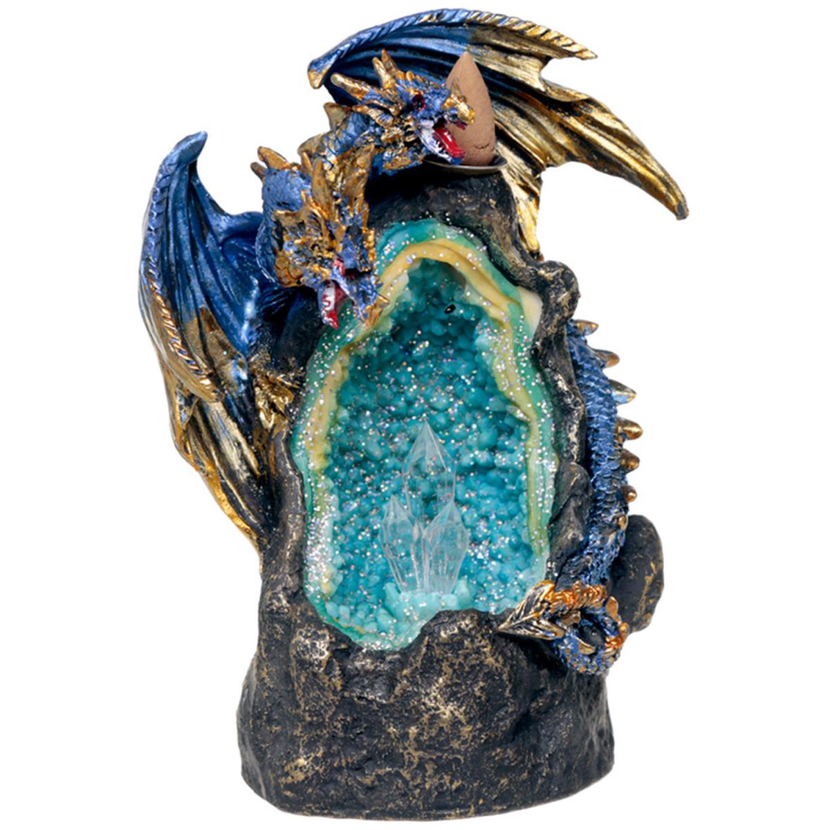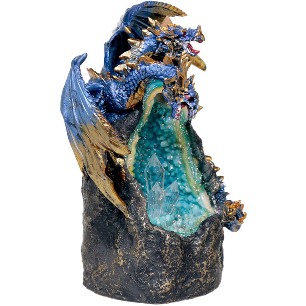 Incense burners are a fantastic item to have in your home whether you use them for burning incense or as a decorative centrepiece. Made from resin and plastic with a metal incense holder, backflow incense burners are easy to use but can only be used with backflow incense. Backflow incense creates a smoke that flows down, over, and through the incense burner, creating a misty waterfall effect. The burner has been designed to channel this smoke in a decorative way that enhances the design of the product. This burner also has an LED effect, which requires 2 AA batteries which are not included. The natural resins in backflow incense can leave a light residue on the surface of the burner, this can be wiped away with a damp cloth. All backflow burners come with instructions and safety information. Never leave unattended when lit and always place on a heatproof surface away from drafts and soft furnishings. Backflow incense is not included with this product and must be purchased separately.