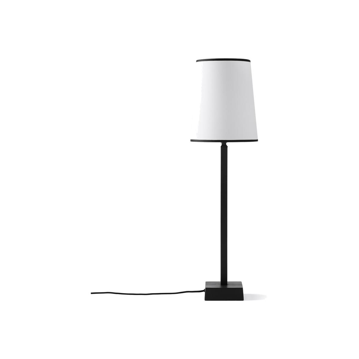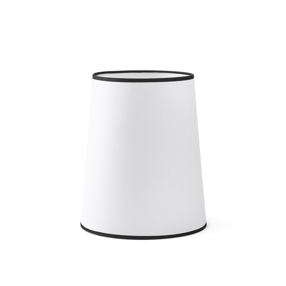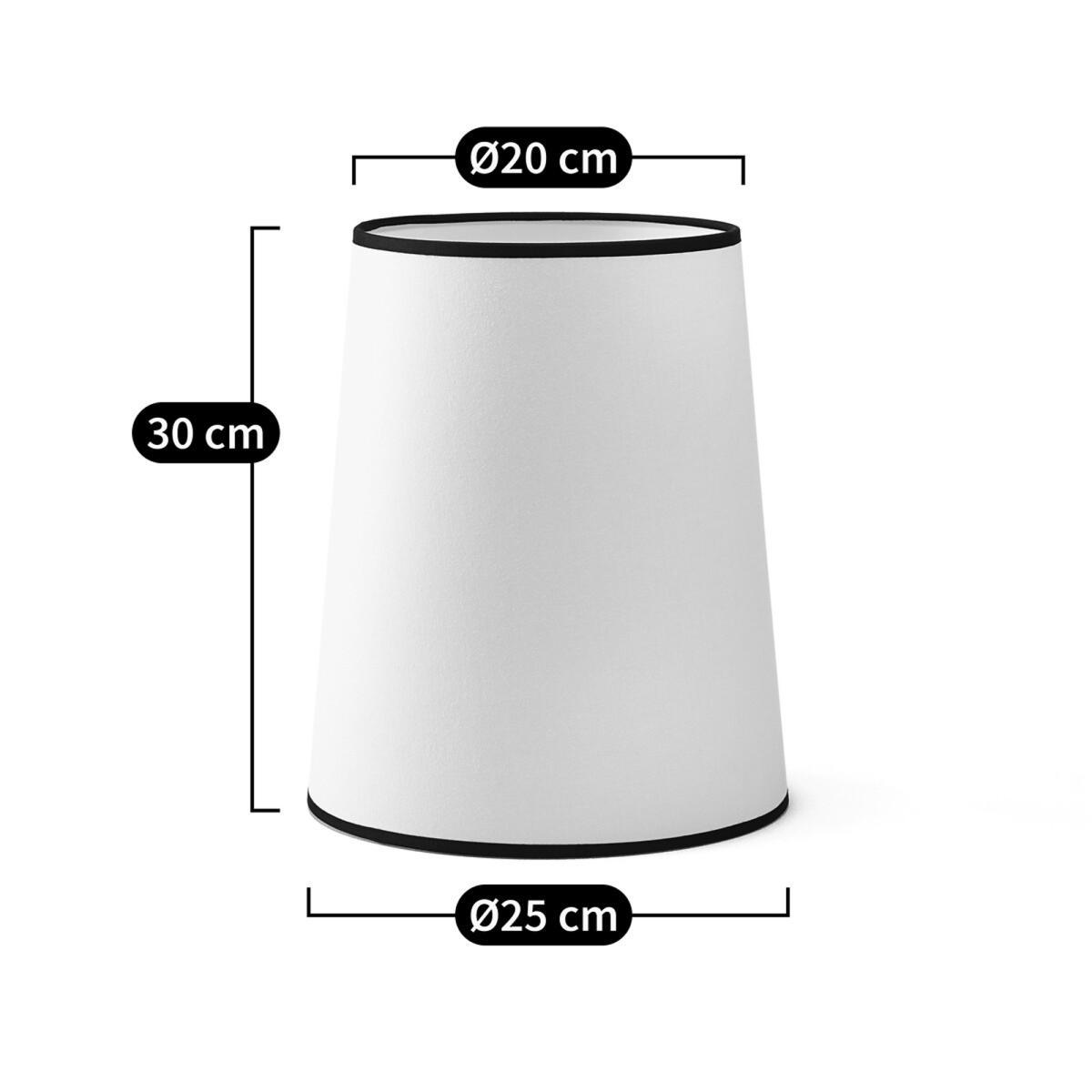 The Fanya 25cm diameter lampshade. This chic lampshade takes up minimal space thanks to its cone shape. Product Details. White epoxy wire structure. Polyproylene plate covered with polycotton. Contrasting cotton braid at the top and bottom of the shade. Supports E27 bulb (not supplied). Non-electrified. Made in France Additional Information. The Fanya lampshade can be used with the Noga floor lamp base, find it through AMPMSize. Diameter at the bottom: 25cm. Diameter at the top : 20cm. Height: 30cm. Dimensions and weight of parcel. L31 x H31 x D22 cm. 0.5 kg.