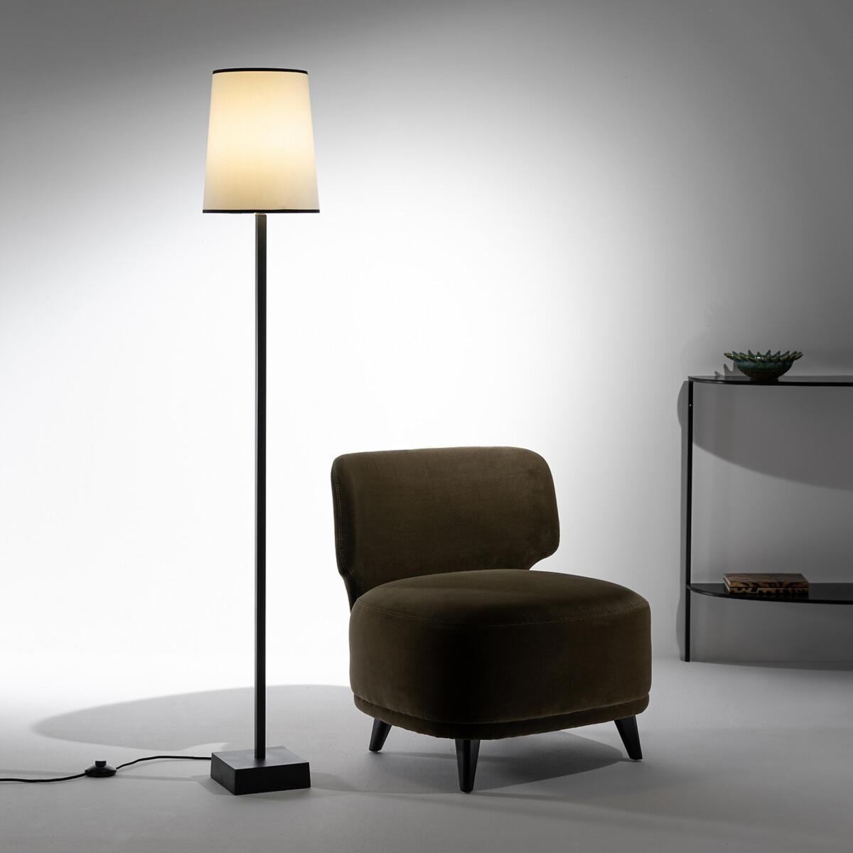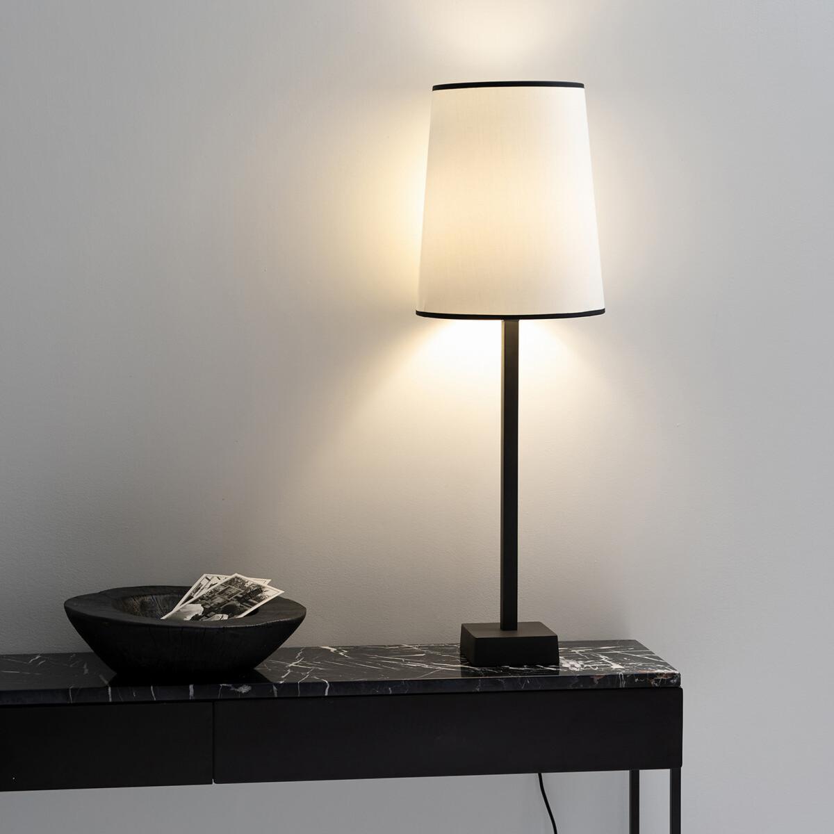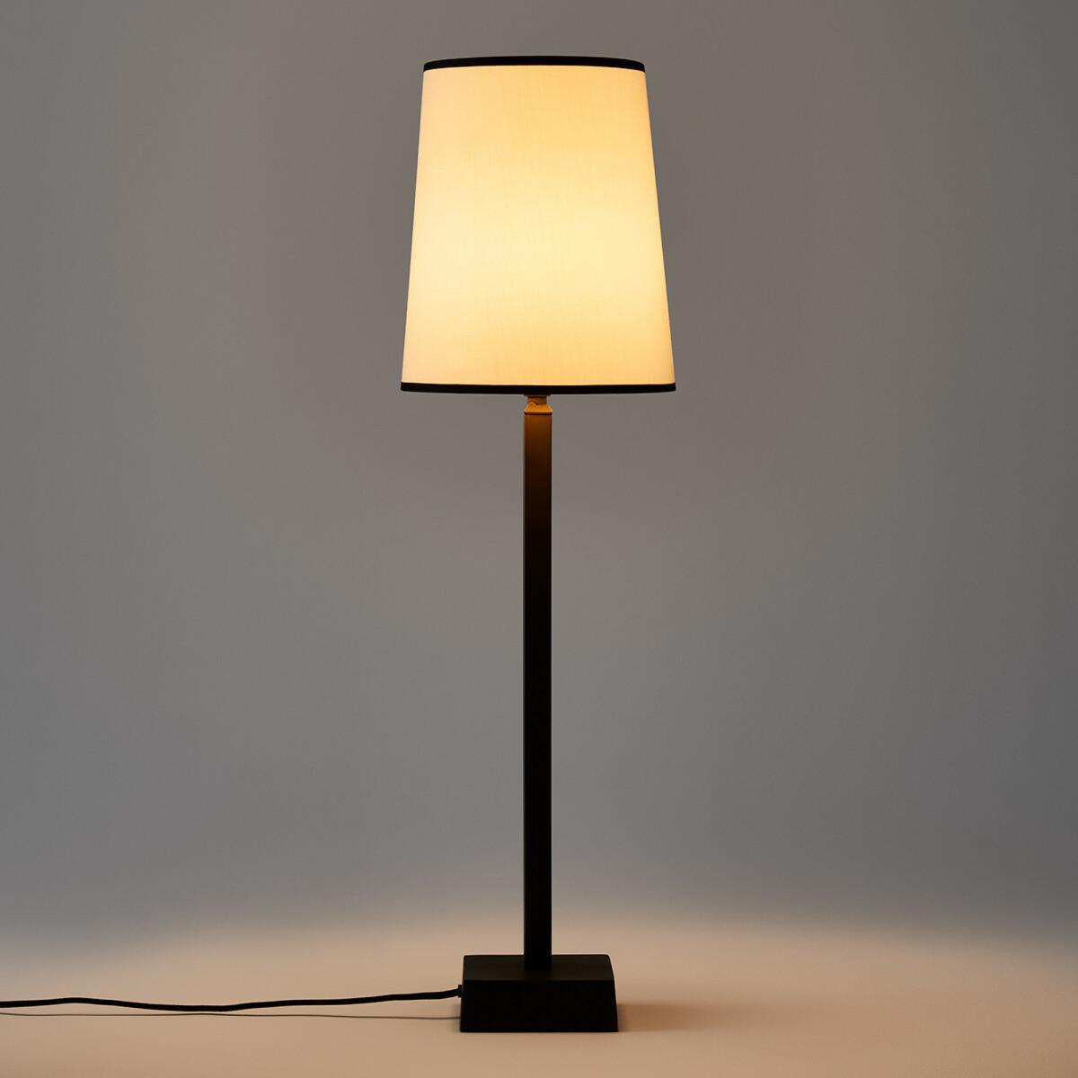 The Fanya 25cm diameter lampshade. This chic lampshade takes up minimal space thanks to its cone shape. Product Details. White epoxy wire structure. Polyproylene plate covered with polycotton. Contrasting cotton braid at the top and bottom of the shade. Supports E27 bulb (not supplied). Non-electrified. Made in France Additional Information. The Fanya lampshade can be used with the Noga floor lamp base, find it through AMPMSize. Diameter at the bottom: 25cm. Diameter at the top : 20cm. Height: 30cm. Dimensions and weight of parcel. L31 x H31 x D22 cm. 0.5 kg.