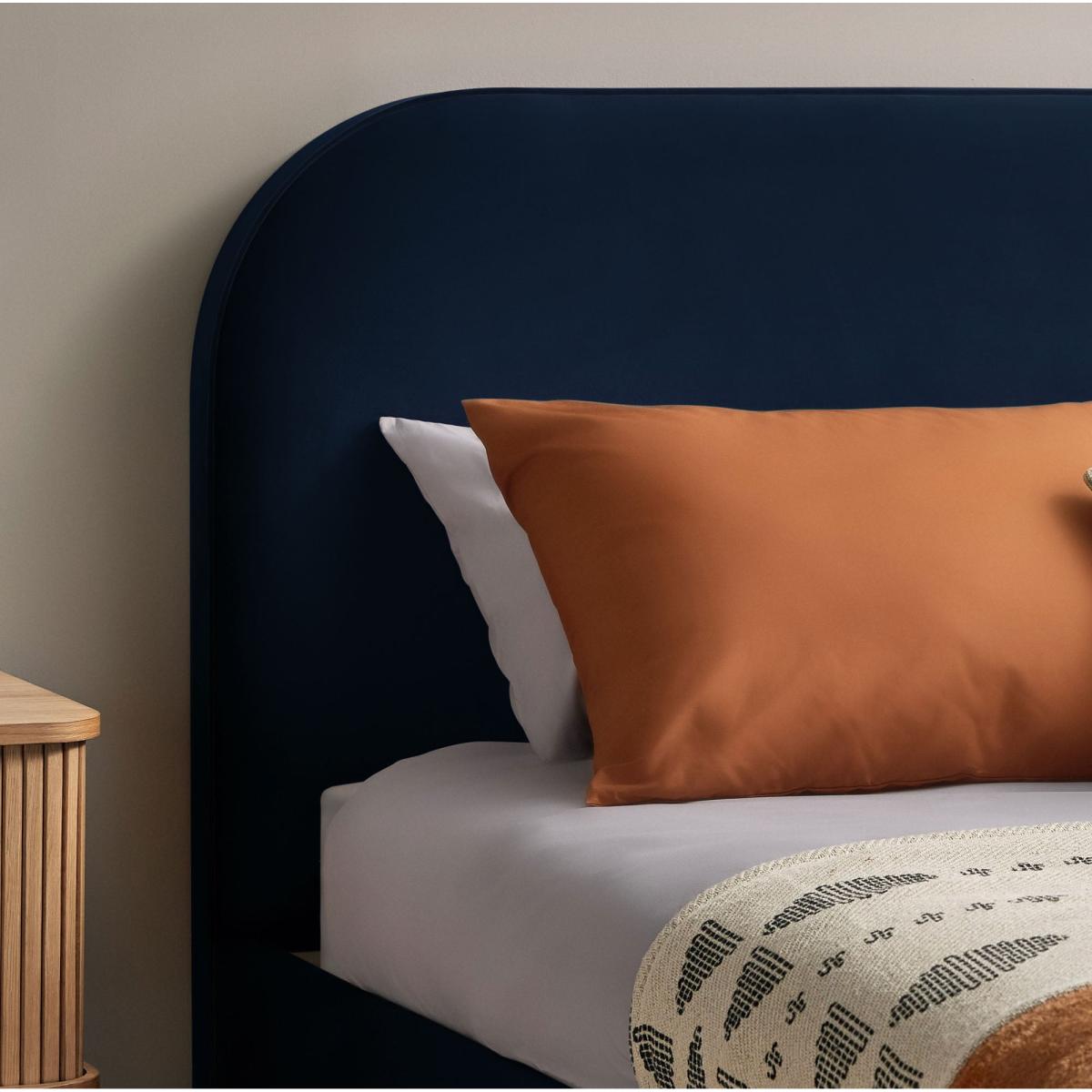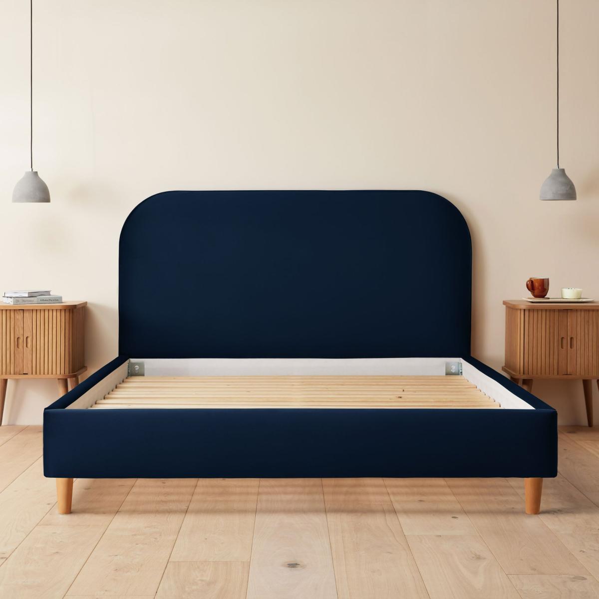 I’m a fan of this navy velvet bed for its clean, curved headboard and slim wooden legs - it instantly lifts a room without feeling bulky. The rich maritime hue works well in contemporary Scandi schemes, mid-century bedrooms or even darker, moody spaces as a focal point. For styling, keep linens in soft neutrals or muted terracottas and introduce a mix of textures through cushions and a wool throw. A pair of brass or oak bedside tables and simple pendant lights will complement the velvet’s sheen, while regular light brushing or vacuuming will keep the fabric looking its best.