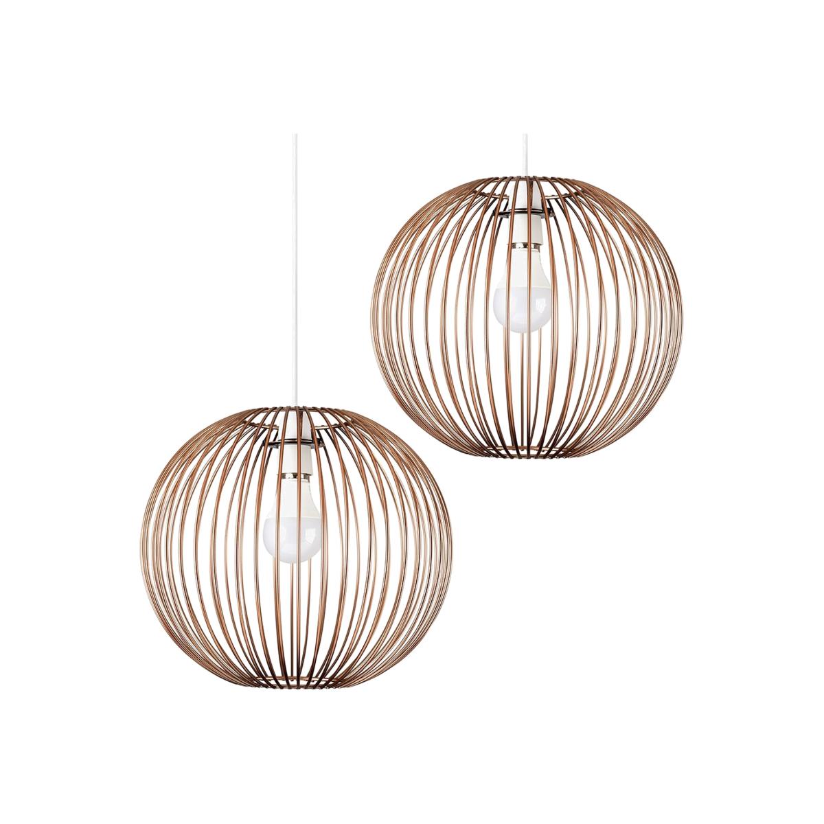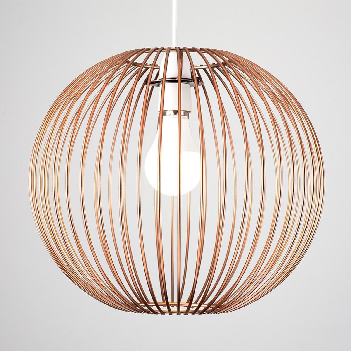 Pair of retro style globe metal ceiling pendant light shades in a copper effect finish. Features an open design which shades the bulb whilst allowing light to disperse effectively and evenly throughout the room. Ideal for lounges, dining rooms, bedrooms and hallways. Ceiling lights are usually the main source of illuminating a room but with the many styles on offer today, also become a main focal point or talking point. The right fitting can make a real style statement and complete your living space look.