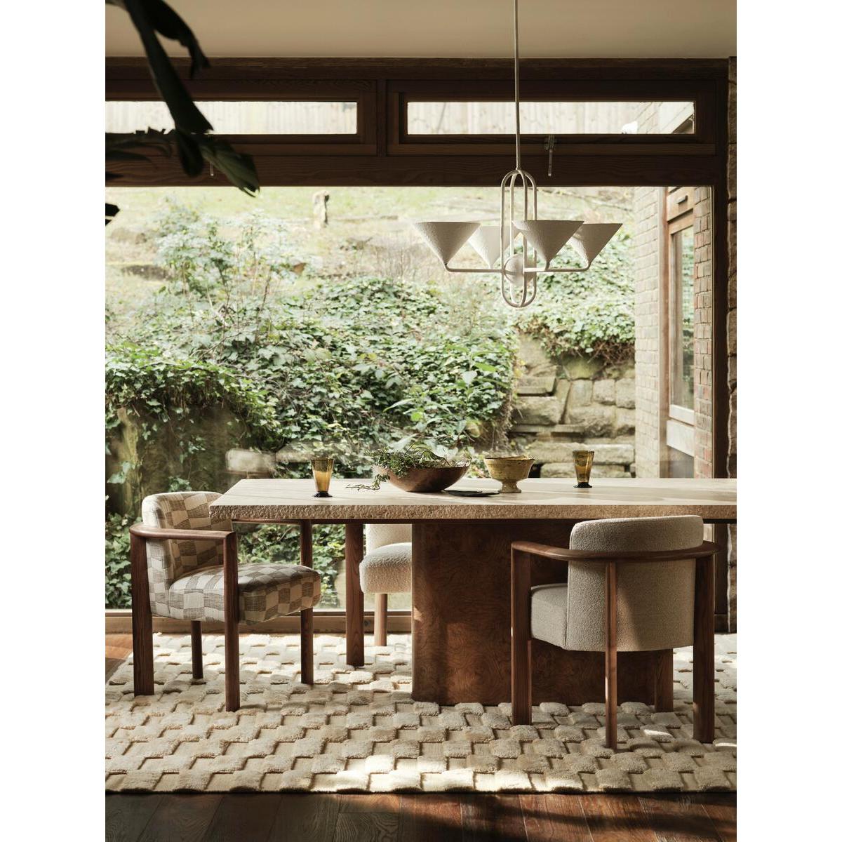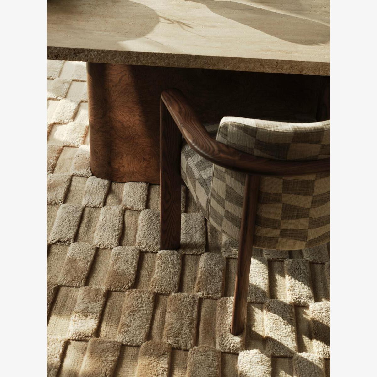 Our Farah rug uses a mix of wool flatwoven blocks against flokati techniques to create a subtle checkerboard design. The combination of light and dark tones make this style an easy layering piece in the home with other warm neutral rugs. Finished with two authentic tassels to each corner, place under a dining table or a coffee table to recreate the natural, comforting design aesthetic of our country Houses. Checkerboard rug Flatwoven and flokati blocks Warm, neutral tones Available in a range of sizes Inspired by our country Houses