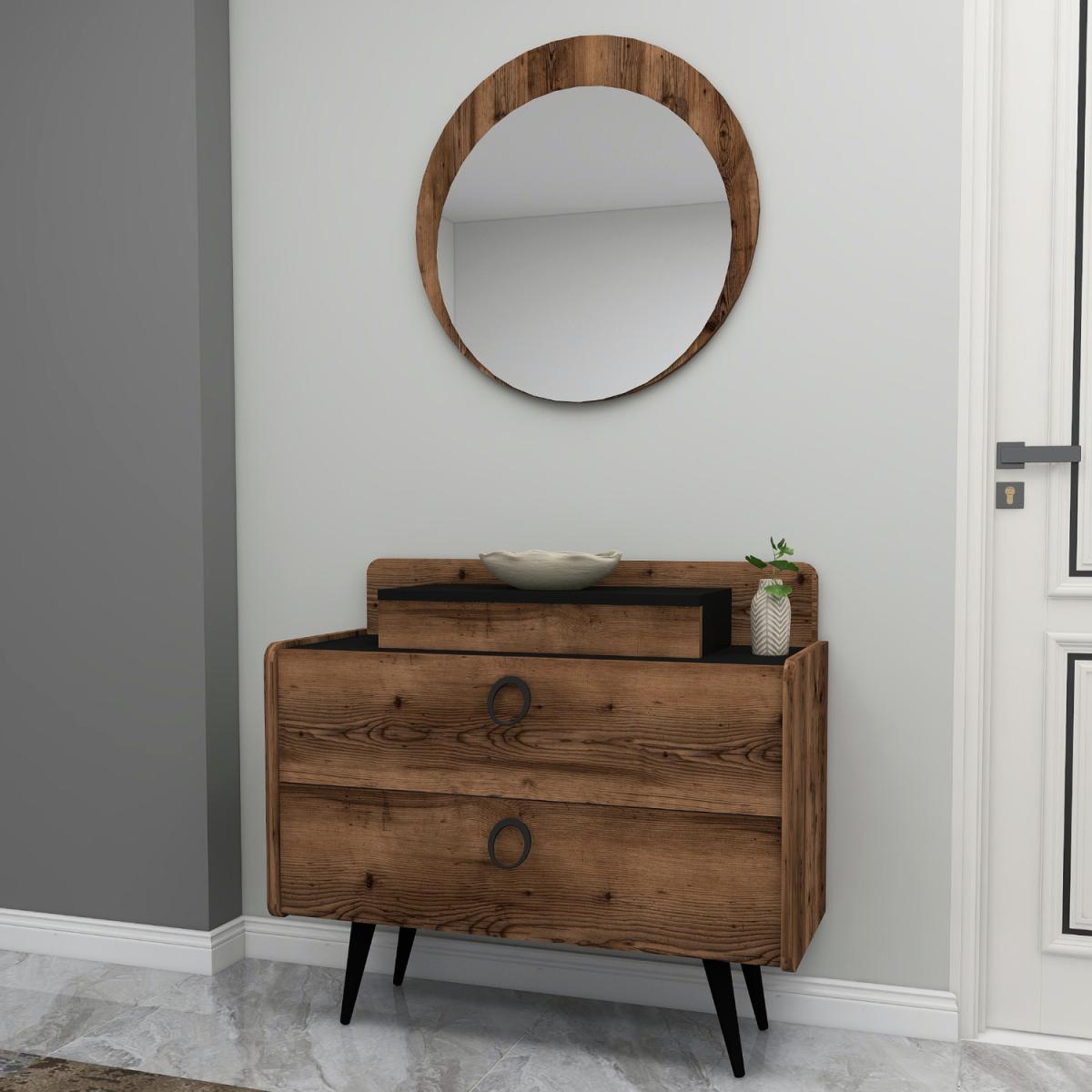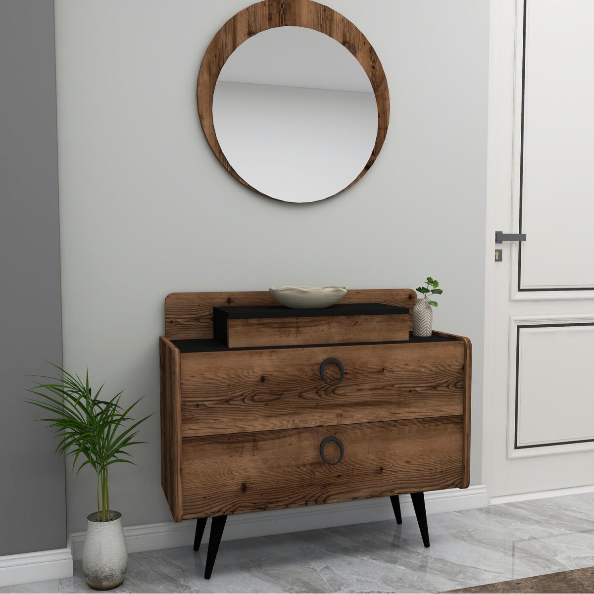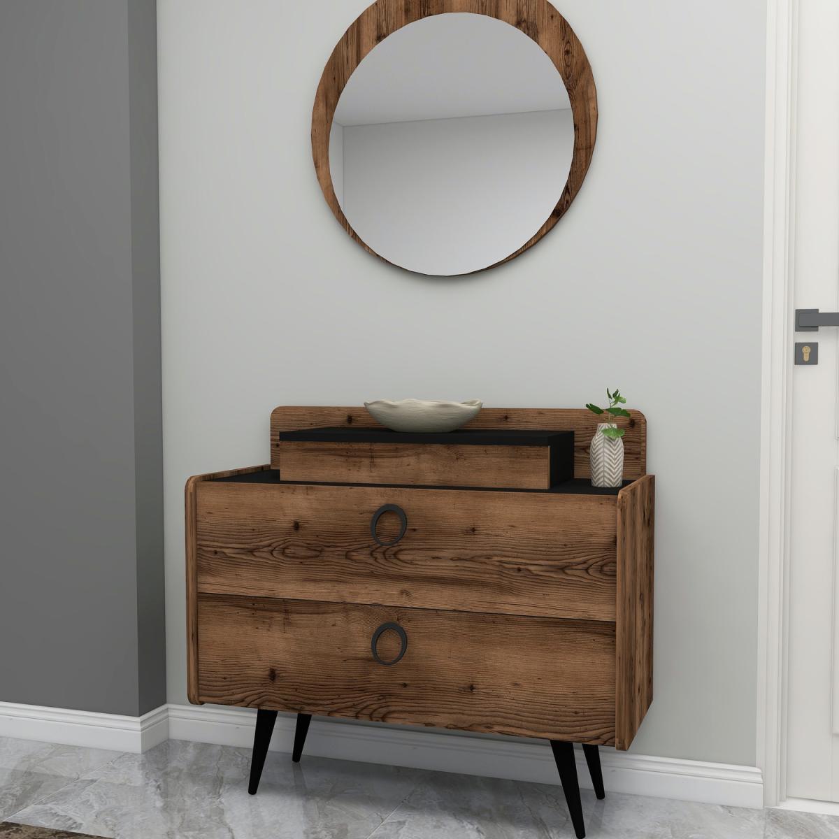 MATERIAL The dresuar console table is made of an 18 mm thick quality melamine-coated particleboard. The manufactured wood surface is water-resistant to some extent and the edges are banded with PVC edge banding tape. First-class assemblyinstallation hardware and accessories are used. Our products are produced from certified quality raw materials that do not contain carcinogenic substances and comply with European Union health norms. CLEANING You can clean your furniture with a dry cloth. Avoid prolonged contact of your product with moisture and water. ASSEMBLY The product will be delivered to the customer in the original package as disassembled. It is designed to be assembled by the customer using a power drill and screwdriver. The assembly manual and installation hardware are included in the package. For fast and error-free installation, product parts are numbered with stickers in accordance with the assembly guide.
