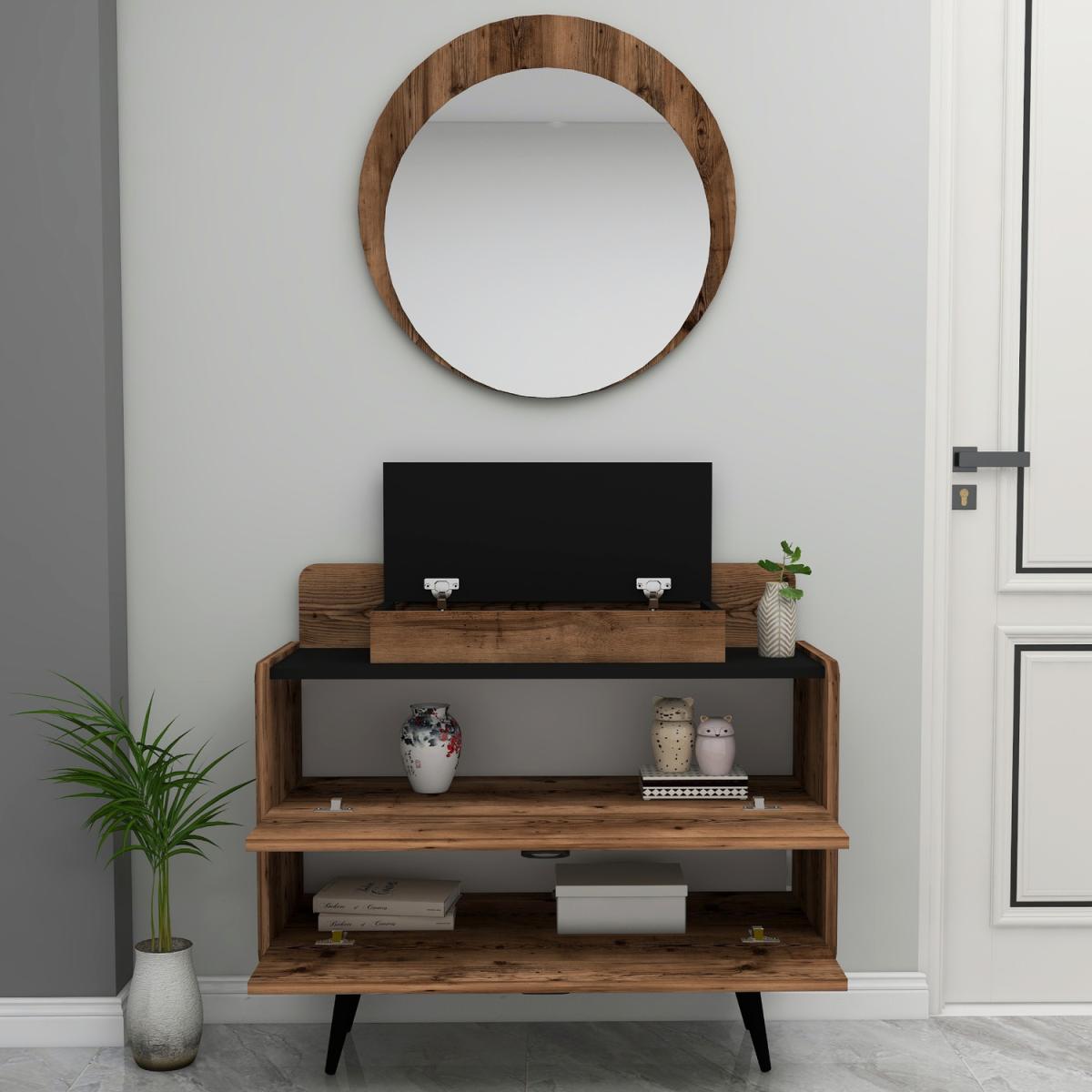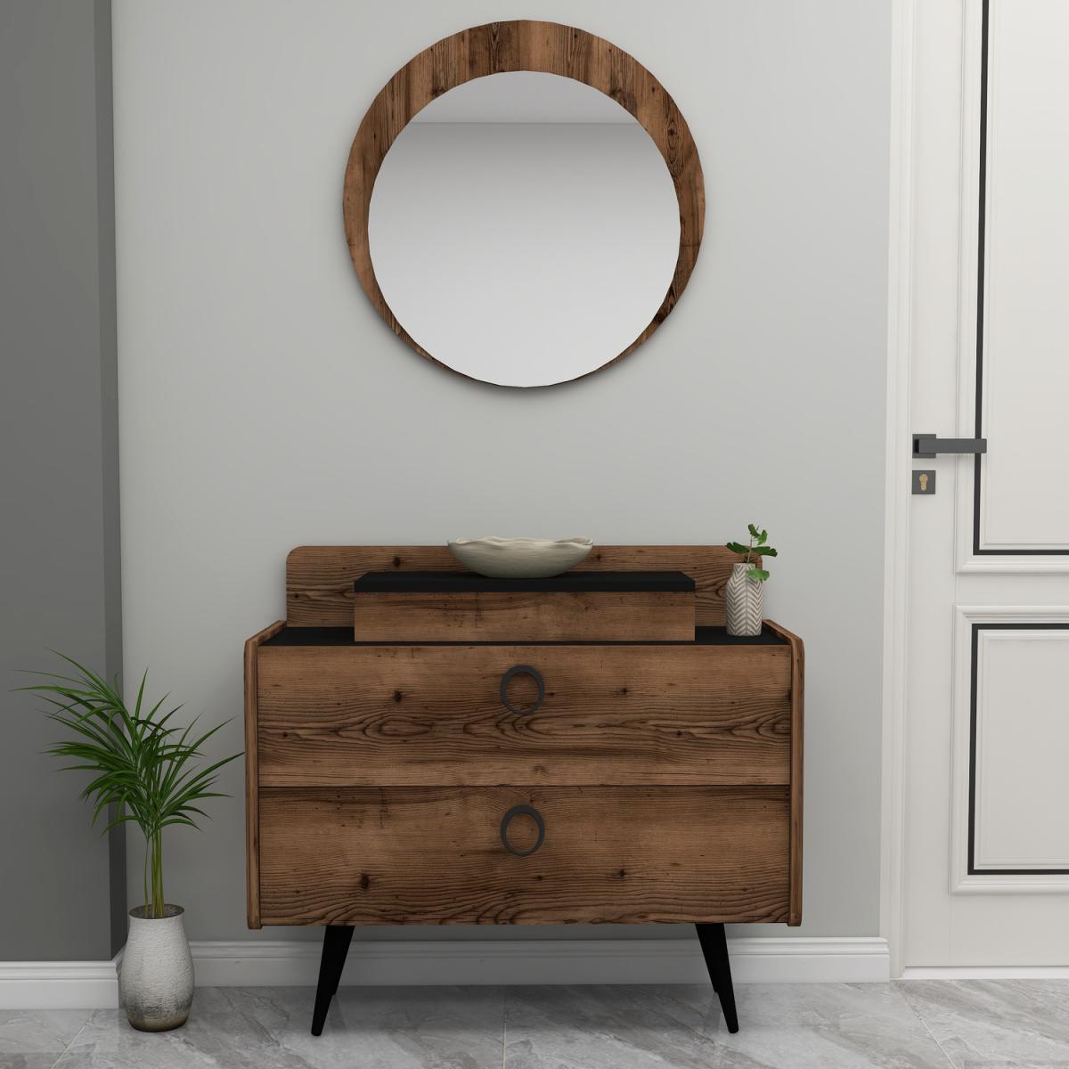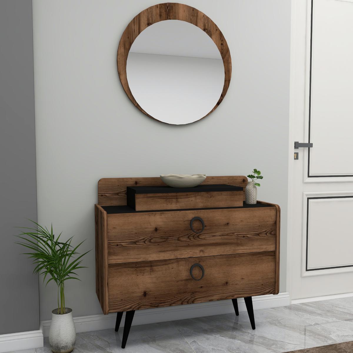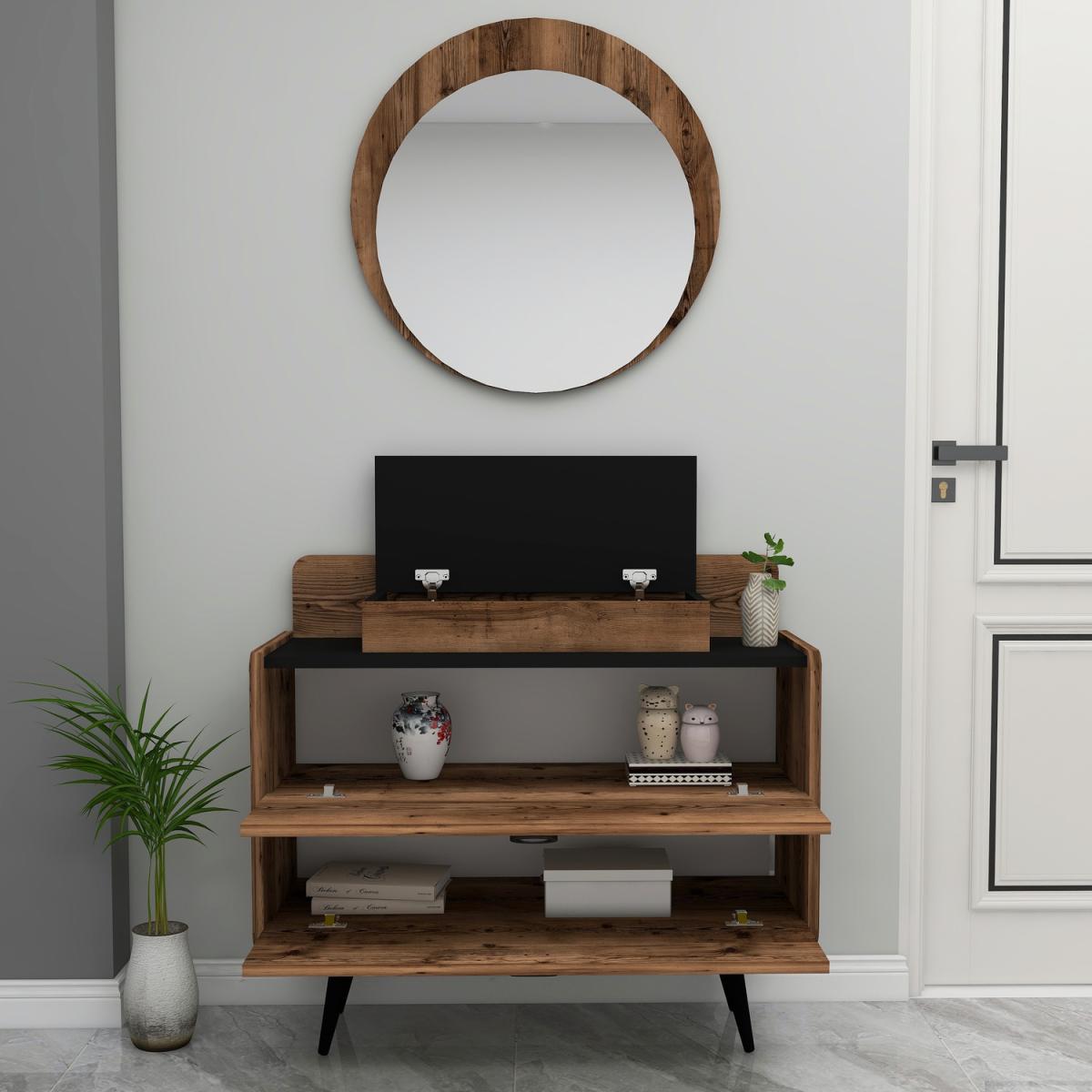 MATERIAL The dresuar console table is made of an 18 mm thick quality melamine-coated particleboard. The manufactured wood surface is water-resistant to some extent and the edges are banded with PVC edge banding tape. First-class assemblyinstallation hardware and accessories are used. Our products are produced from certified quality raw materials that do not contain carcinogenic substances and comply with European Union health norms. CLEANING You can clean your furniture with a dry cloth. Avoid prolonged contact of your product with moisture and water. ASSEMBLY The product will be delivered to the customer in the original package as disassembled. It is designed to be assembled by the customer using a power drill and screwdriver. The assembly manual and installation hardware are included in the package. For fast and error-free installation, product parts are numbered with stickers in accordance with the assembly guide.