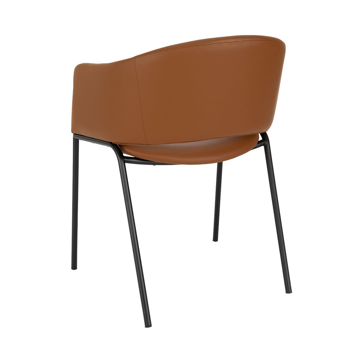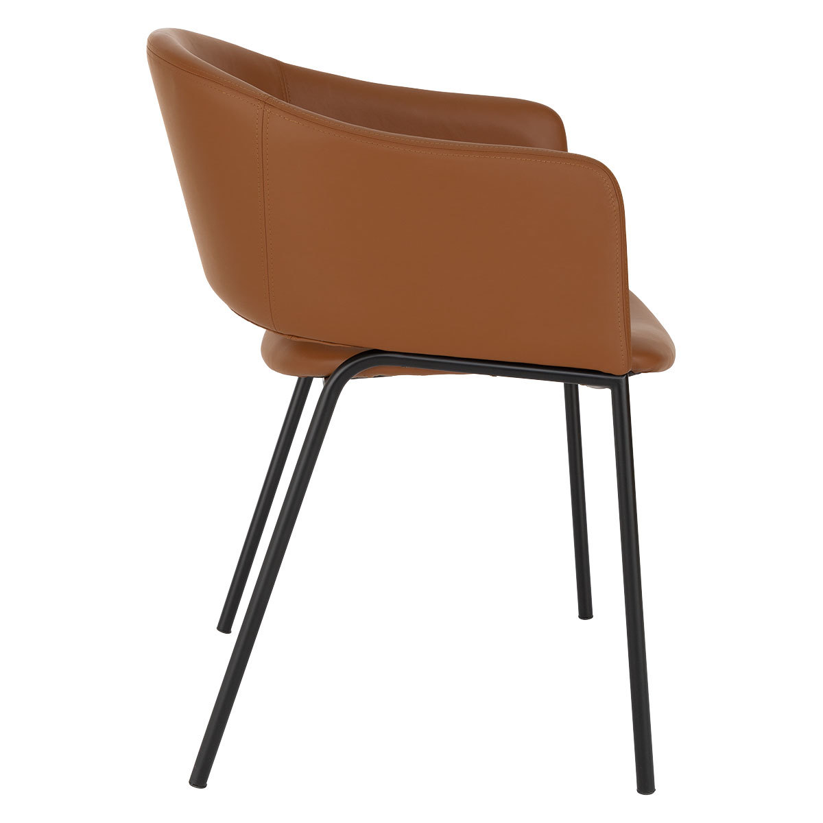 A contemporary design, the Farfield brown leather and black metal dining chair offers the perfect seat for meal times. Boasting clean lines and elegant curves, this dining chair has been designed with an open back and curved backrest that scoops down to incorporate armrests. Its generous leather cushioned seat offers the upmost comfort, whilst its sturdy metal legs lend a softer look to the design. Comfortable and stylish, Farfield can even be used as an occasional chair in the bedroom, living room or home office. It also comes in an upholstered grey fabric with oak legs.