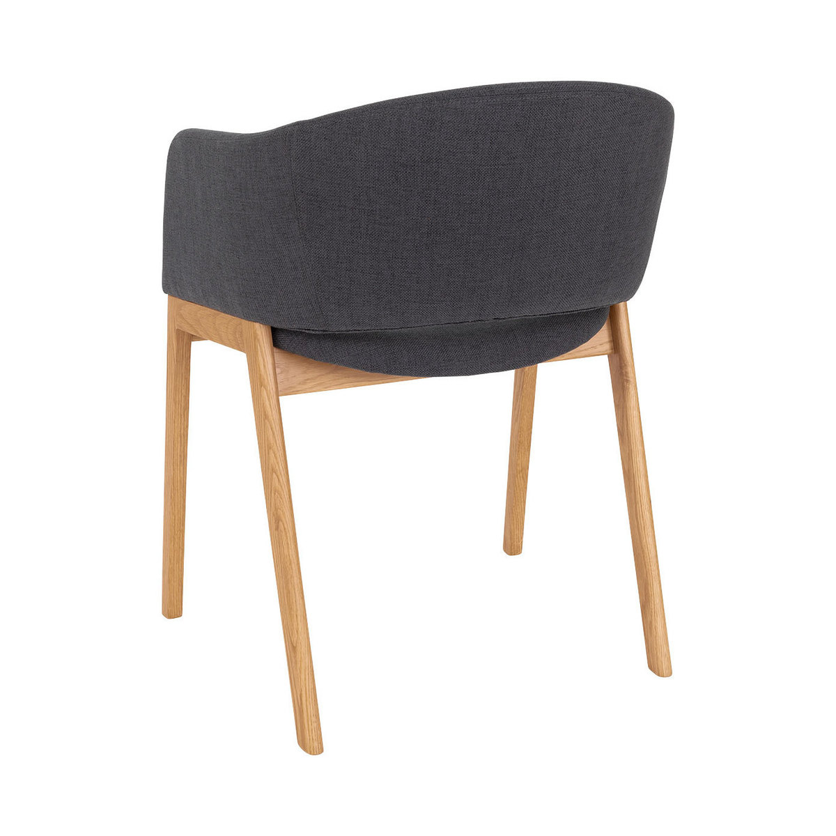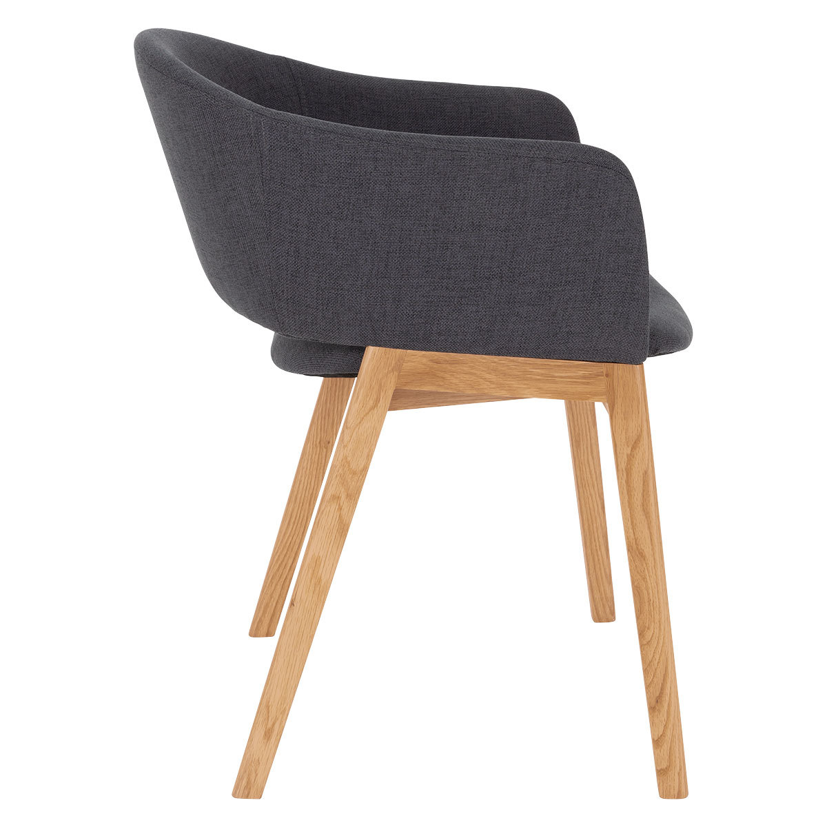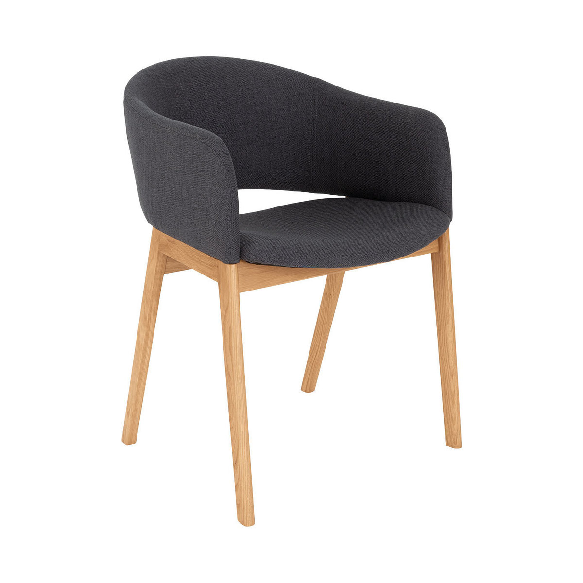A contemporary design, the Farfield grey upholstered dining chair with oak legs offers the perfect seat for meal times. Boasting clean lines and elegant curves, this dining chair has been designed with an open back and curved backrest that scoops down to incorporate armrests. Its generous upholstered cushioned seat offers the upmost comfort, whilst its sturdy oak legs lend a softer look to the design. Comfortable and stylish, Farfield can even be used as an occasional chair in the bedroom, living room or home office. It also comes in brown leather with black metal legs.