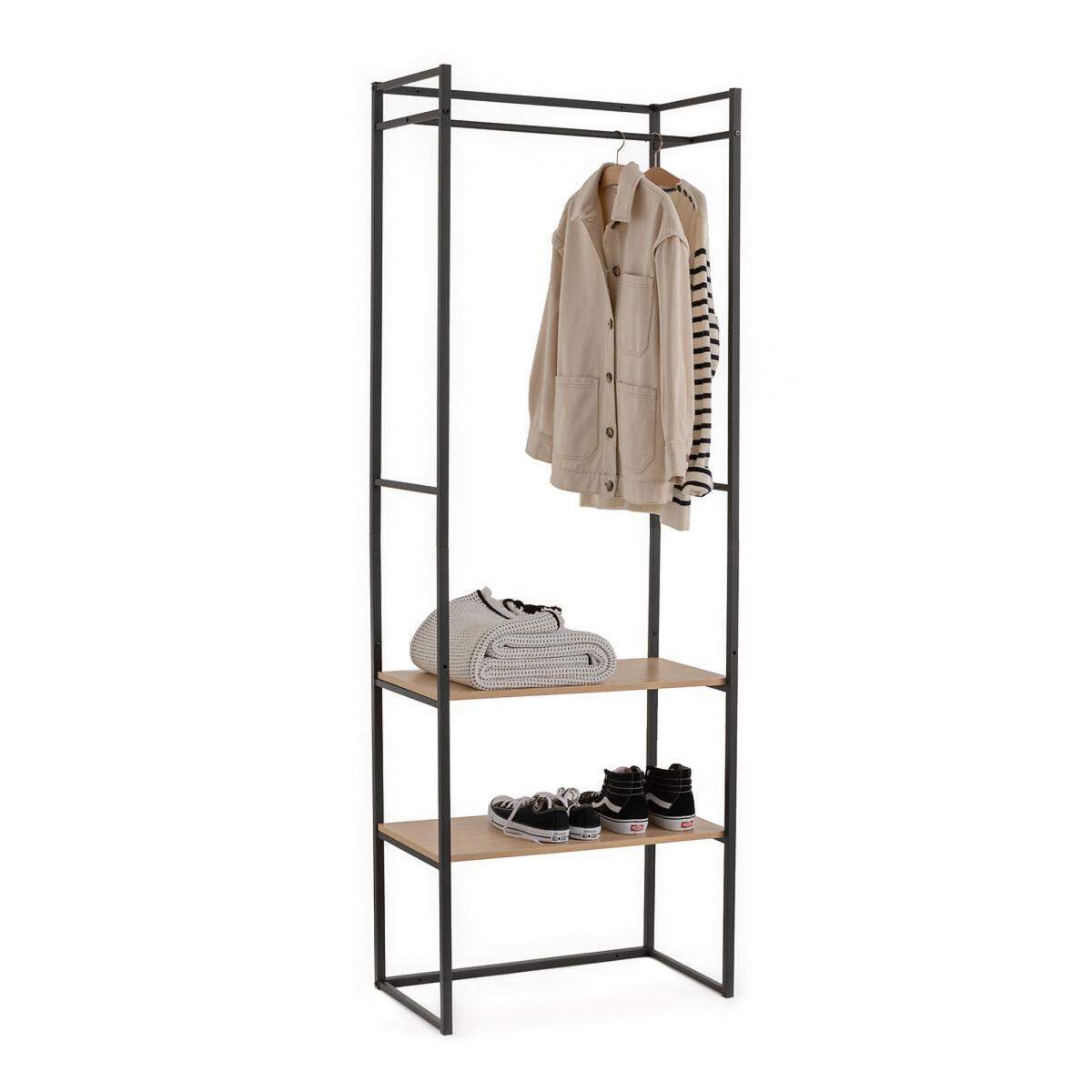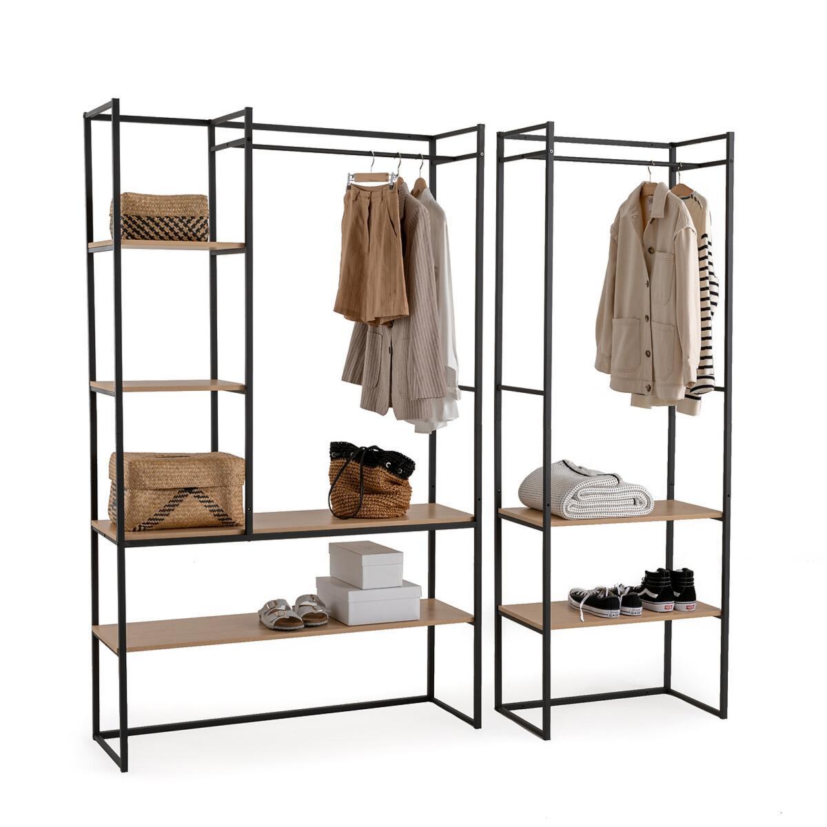Bring an industrial feel to your home. Ideal for small spaces, Farla is designed to make the most of its height. This dressing module offers 2 possible combinations with its wardrobe bar and 2 shelves, all interchangeable.