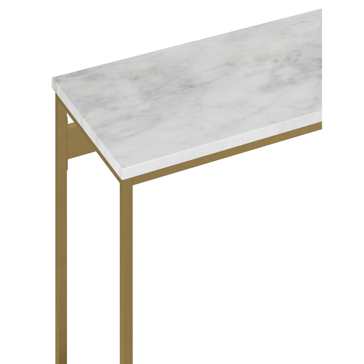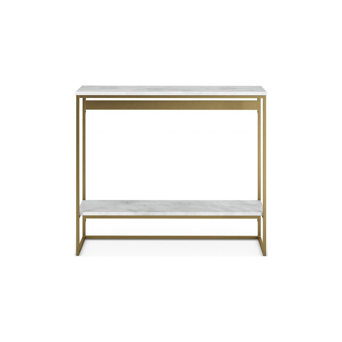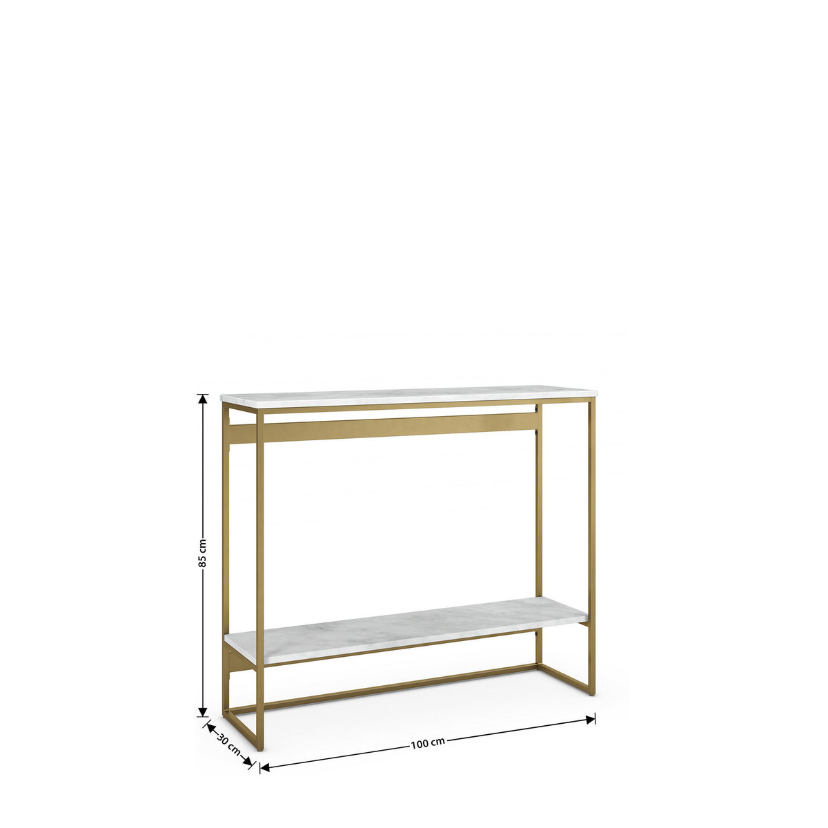A simple yet modern design, this understated console table will add a touch of elegance to your living space. Features a contemporary brass frame with two luxurious Farley marble shelves. We’re so confident our furniture is built to last, our industry-leading guarantee covers any manufacturing failure on all furniture. That’s our promise, and why our furniture comes with a 10-year guarantee that you can trust. Excludes: outdoor furniture and any issues that are a result of normal wear and tear, improper care or accidental damage.