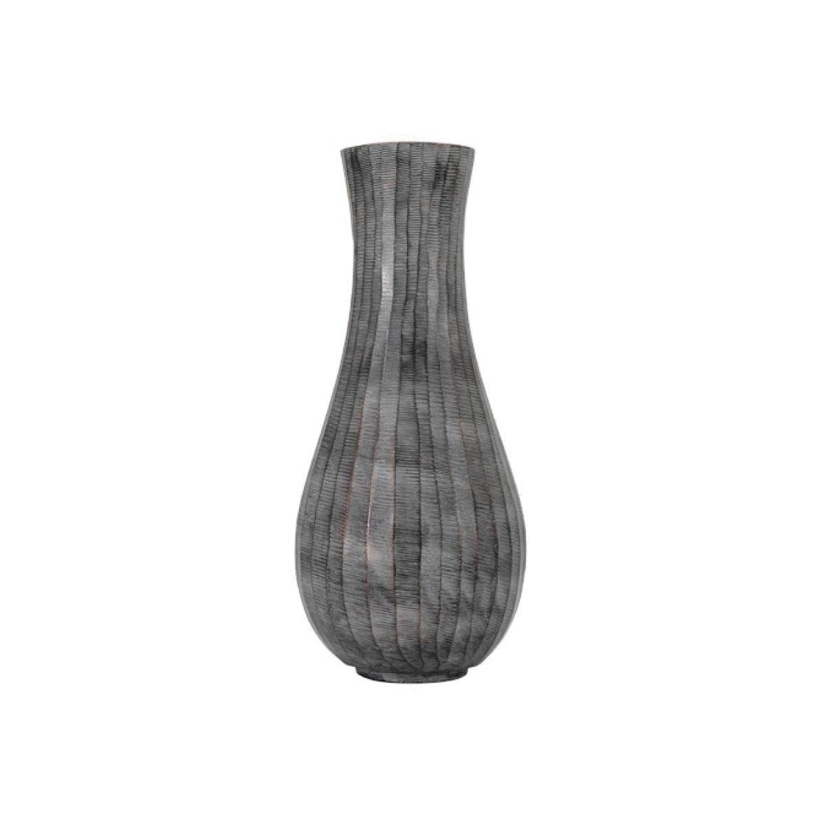 This tall, fluted vase in antique grey is a versatile piece that lends itself well to both contemporary and rustic interiors. I love its understated texture and muted tone, which can add depth without overpowering a space. It works beautifully as a standalone accent piece or filled with simple botanicals like pampas grass or dried flowers for a modern, minimal look. For practical styling tips, try pairing it with other grey or neutral accessories to create cohesion, and position it on a sideboard or mantel for maximum visual impact. Its size makes it an excellent choice for creating height and interest in open-plan spaces or large corners.