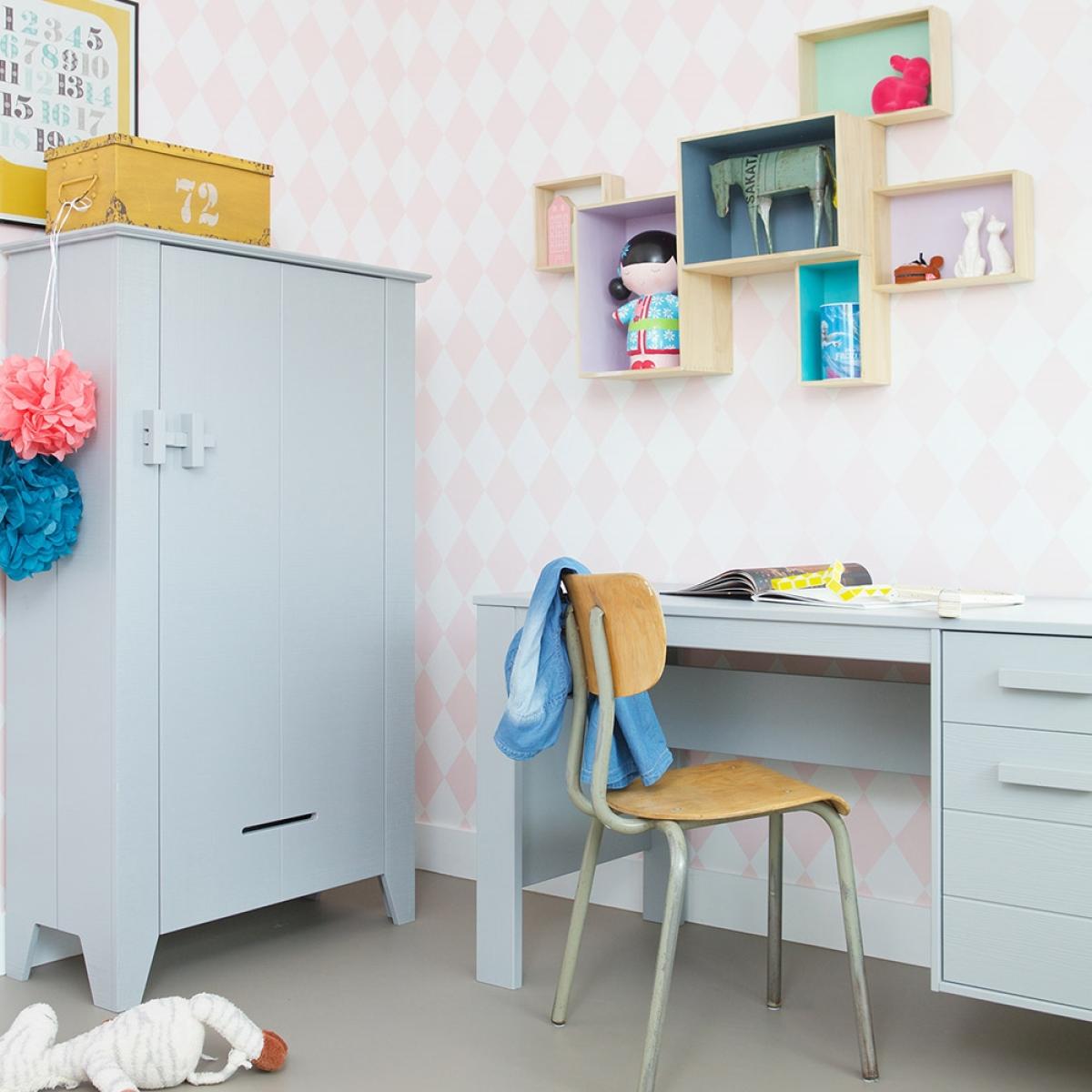 The farmer cabinet in rough sawn pine offers a robust, rustic appeal that works well in both traditional and modern children's bedrooms aiming for a natural, understated look. Its concrete grey finish adds a contemporary touch while the sturdy pine construction ensures durability for everyday use. I love how its simple, practical design allows it to blend seamlessly into a variety of interior schemes-think Scandi minimalism, farmhouse charm, or a more eclectic setup. To style it effectively, consider pairing with natural textures like woven baskets or wooden toys, and keep the surrounding decor light and airy to let the cabinet’s rugged finish stand out. It’s perfect for customising with labels or hooks on the doors for practical organisation, making it both functional and stylish.