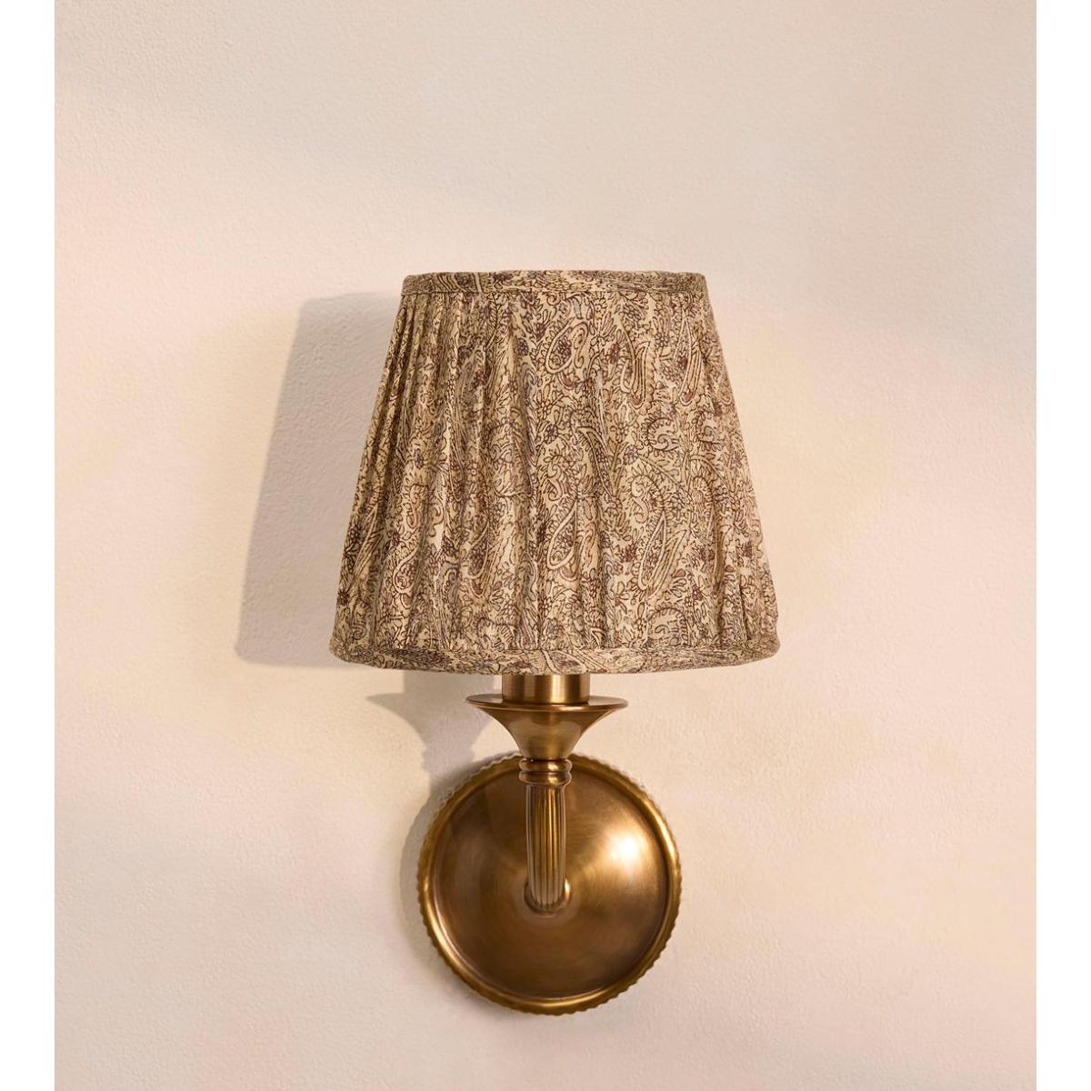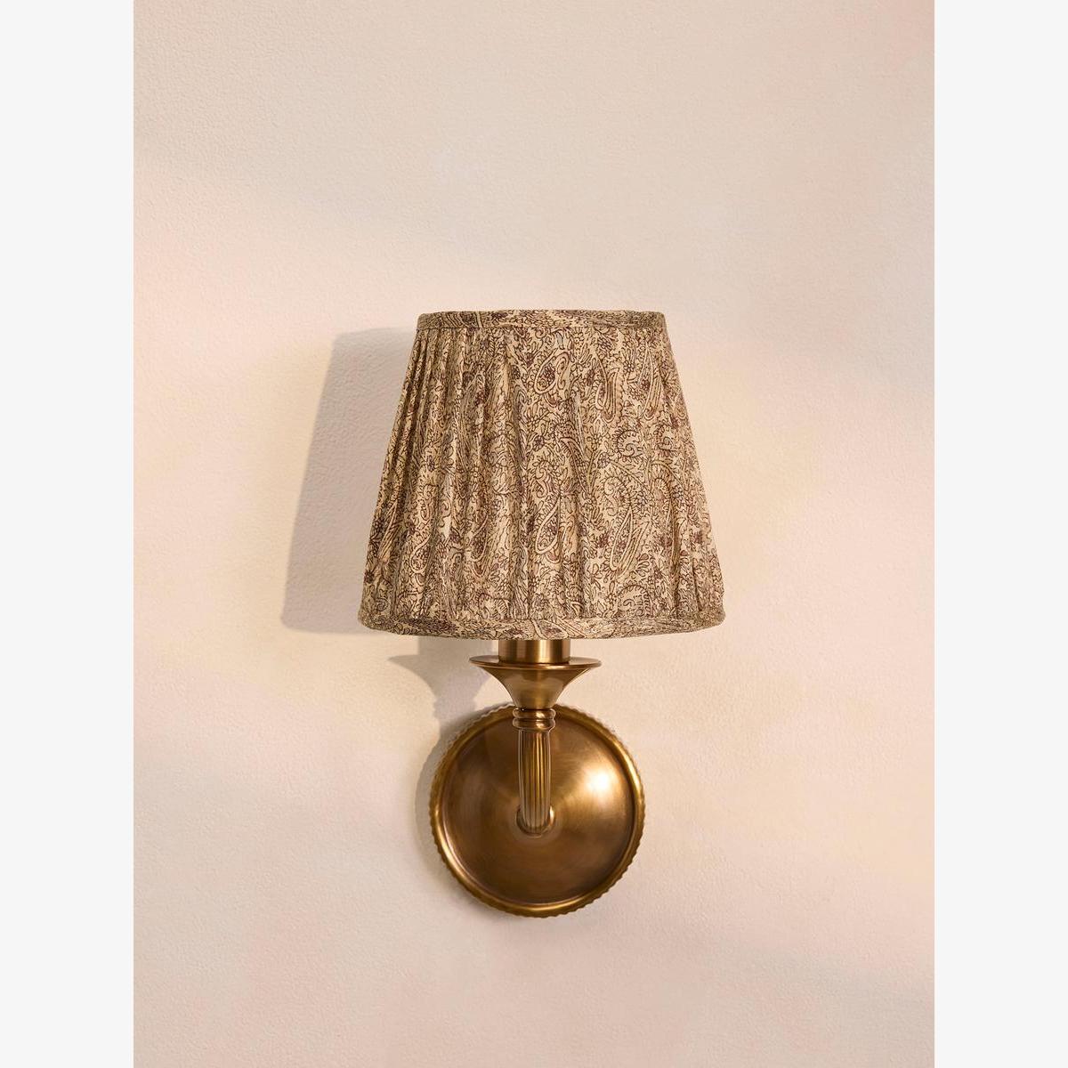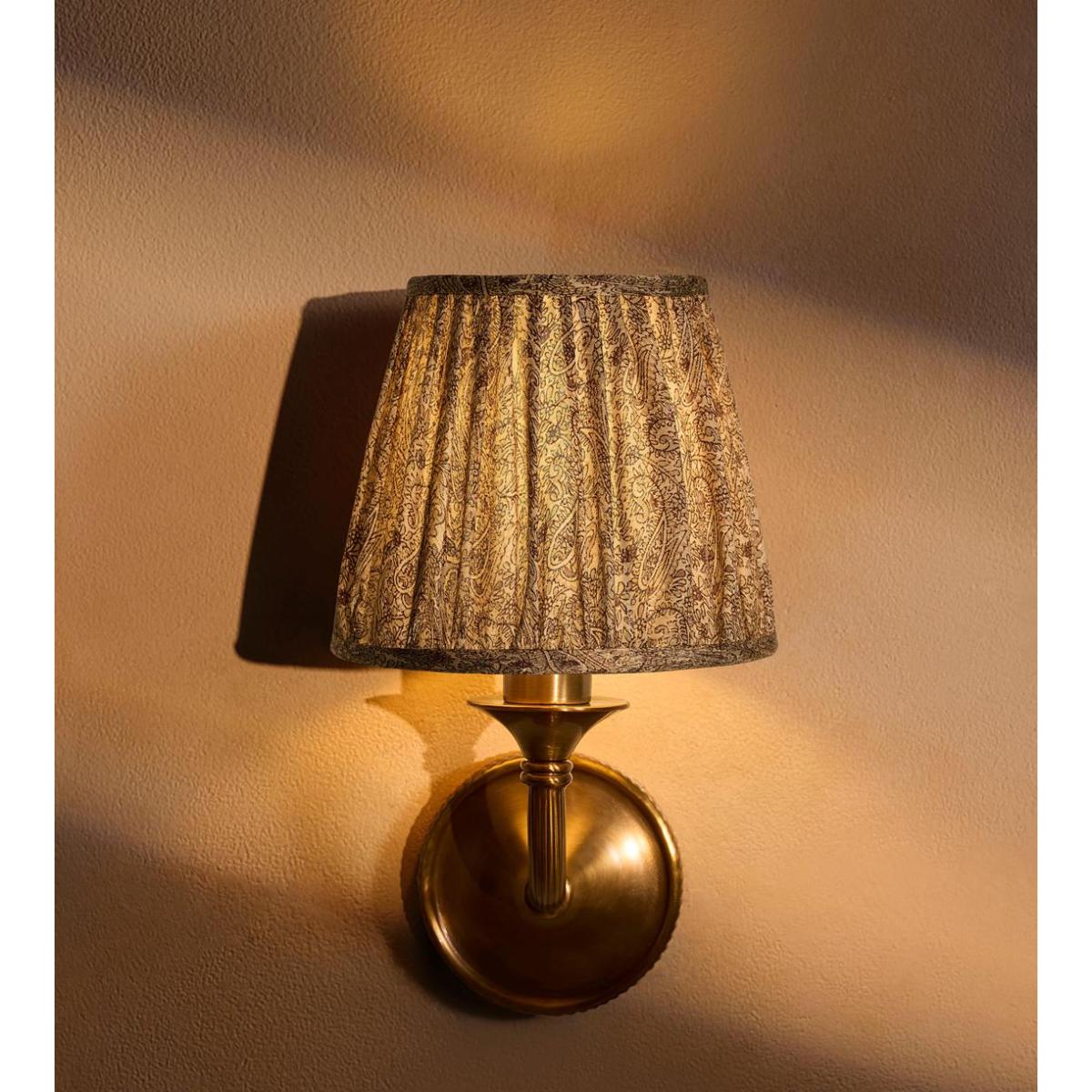 This coned lampshade is made from pleated silk sourced from vintage Indian saris in small batches. Available in three sizes, the Farmhouse lamp shade is made in the UK using patterned, vintage sari fabrics all hand-selected in India. Styled with our Alexander lighting range, base not included.