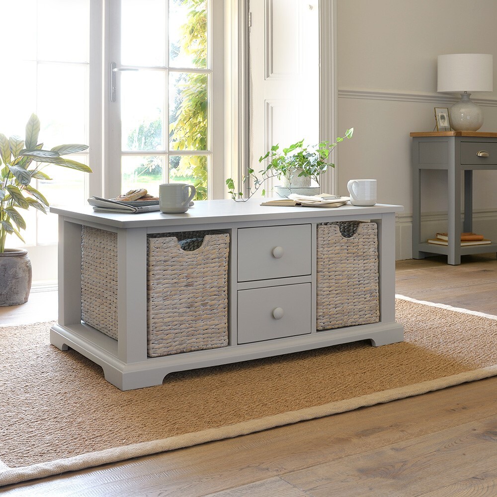 Taking pride of place in the living room, our Farmhouse Dove Grey Coffee Table provides an array of handy storage - perfect for surplus wires, magazines, DVDs, toys and board games. Painted in a stunning soft grey that adds plenty of country charm, it's easier than ever to enjoy an inviting, clutter-free living space.
