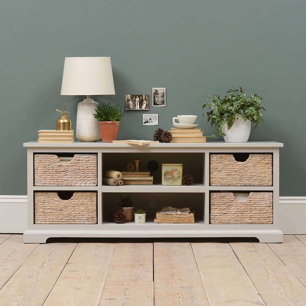While the TV has become the main attraction in many living rooms, there's no reason the stand it sits on must be an eyesore. Our Farmhouse Dove Grey TV Unit will add a covetable country-inspired feel whilst offering ample storage for video games, accessories, spare cables or your digital box. Painted in a soft subtle grey, it will complement the contemporary style of your television.