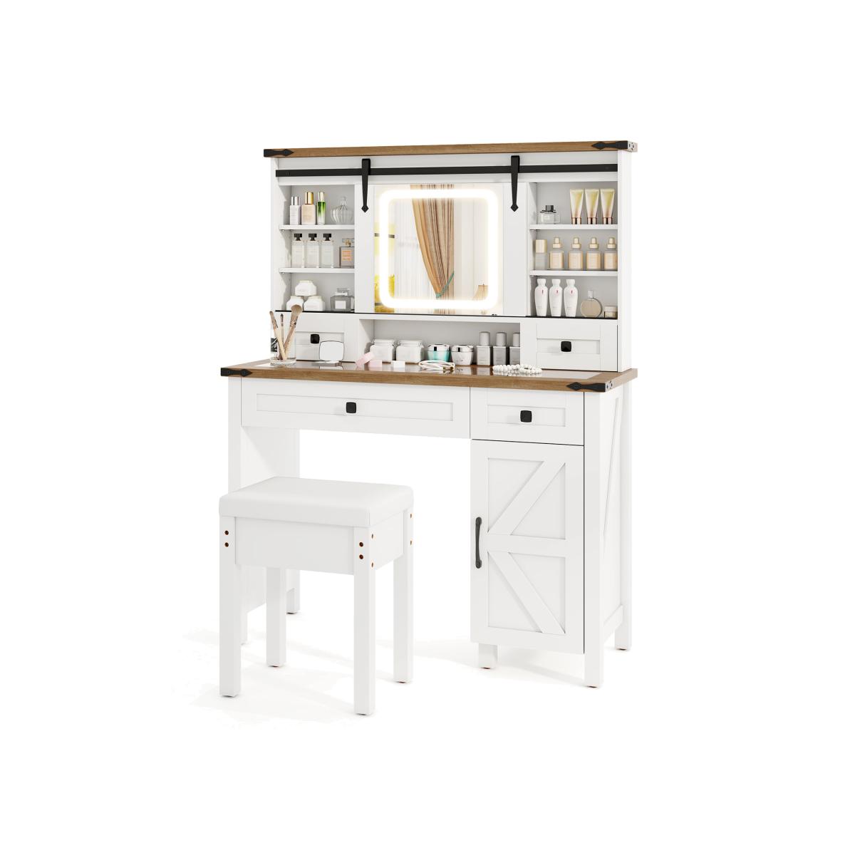 Enhance your daily routine with our dressing table! The sliding mirror offers easy access to storage shelves behind the mirror, and the LED lights features adjustable brightness and 3-color lighting options. Moreover, you stay organized with small and large drawers, and a side cabinet. Moreover, the glass tabletop allows you to easily locate the jewelry you want. With its modern design and thoughtful features, this dressing table makes a stylish and practical gift for loved ones.
