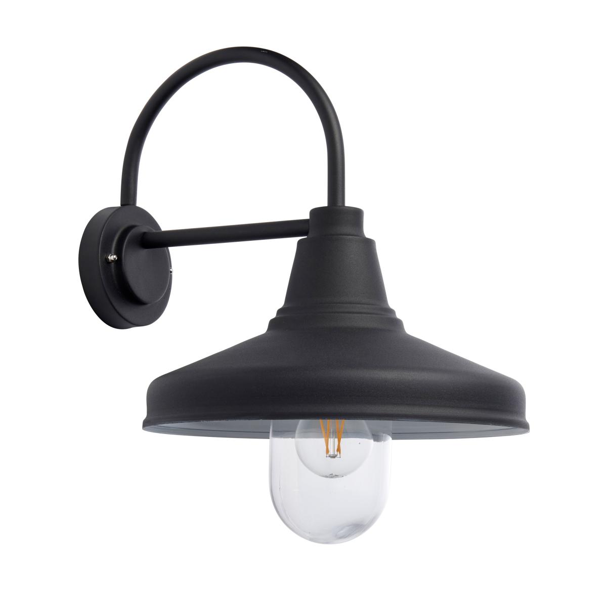 Modern traditional exterior wall light with textured black finish metalwork. Perfect for use with E27 LED filament lamps. IP44 rated for safe exterior use.