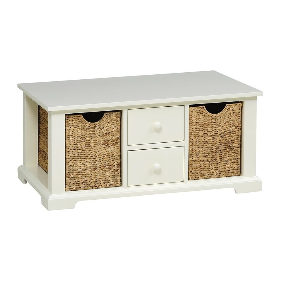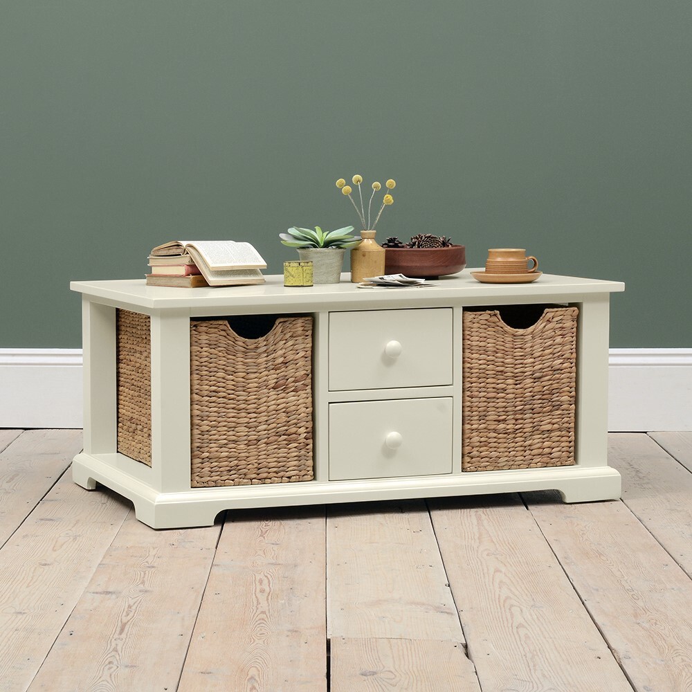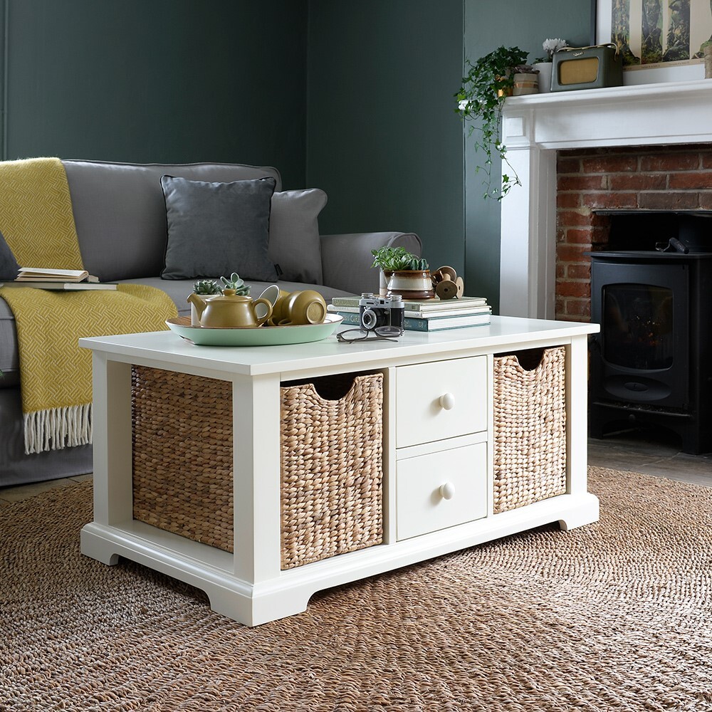 If you're forever trying to find a coaster under a pile of magazines, or tidying away remote controls and game consoles, then our Farmhouse Painted Coffee Table is the just the item for you! Finished in a crisp ivory paint to fit in with every décor, the handwoven wicker baskets and central drawers provide more than enough storage to find a handy home for everything, meaning you can finally give your favourite coffee-table books pride of place to impress your visitors.