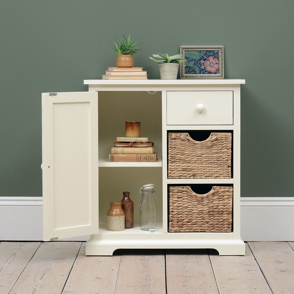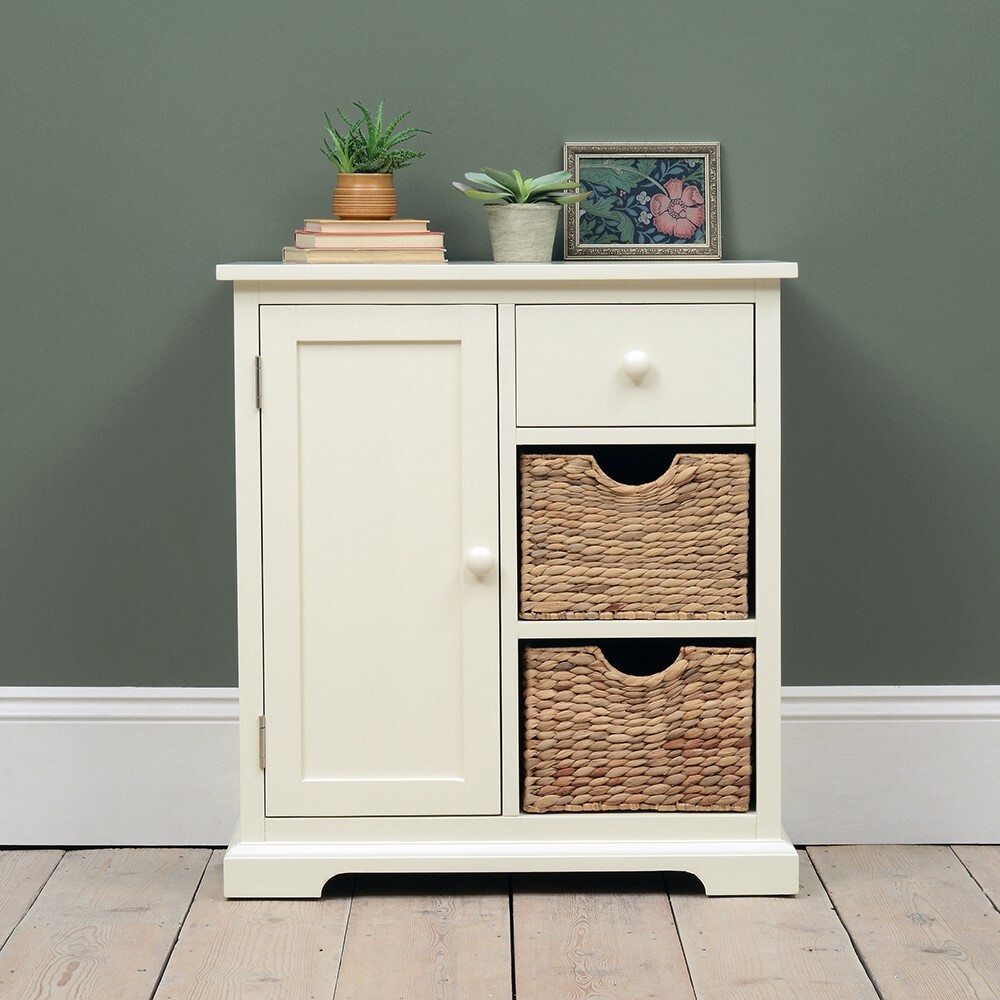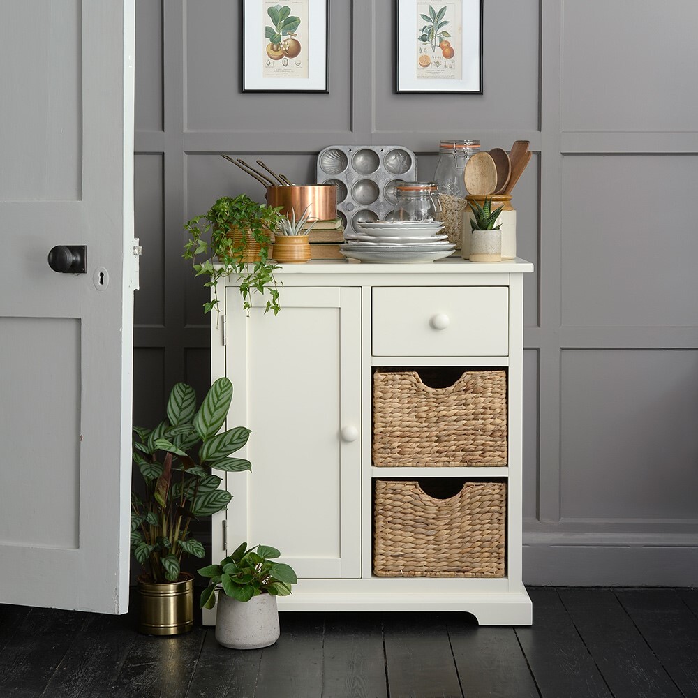 For kitchens of less grand proportions that don't want to miss out on a touch of modern country chic, our mini sideboard will fit the bill. It still offers plenty of practical storage in its drawer, cupboard and pair of wicker baskets - it just won't take up too much space doing it. Plus its fresh, ivory painted finish means this beautifully crafted piece will always look smart too, whatever your décor.