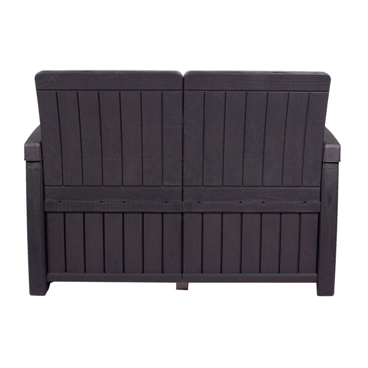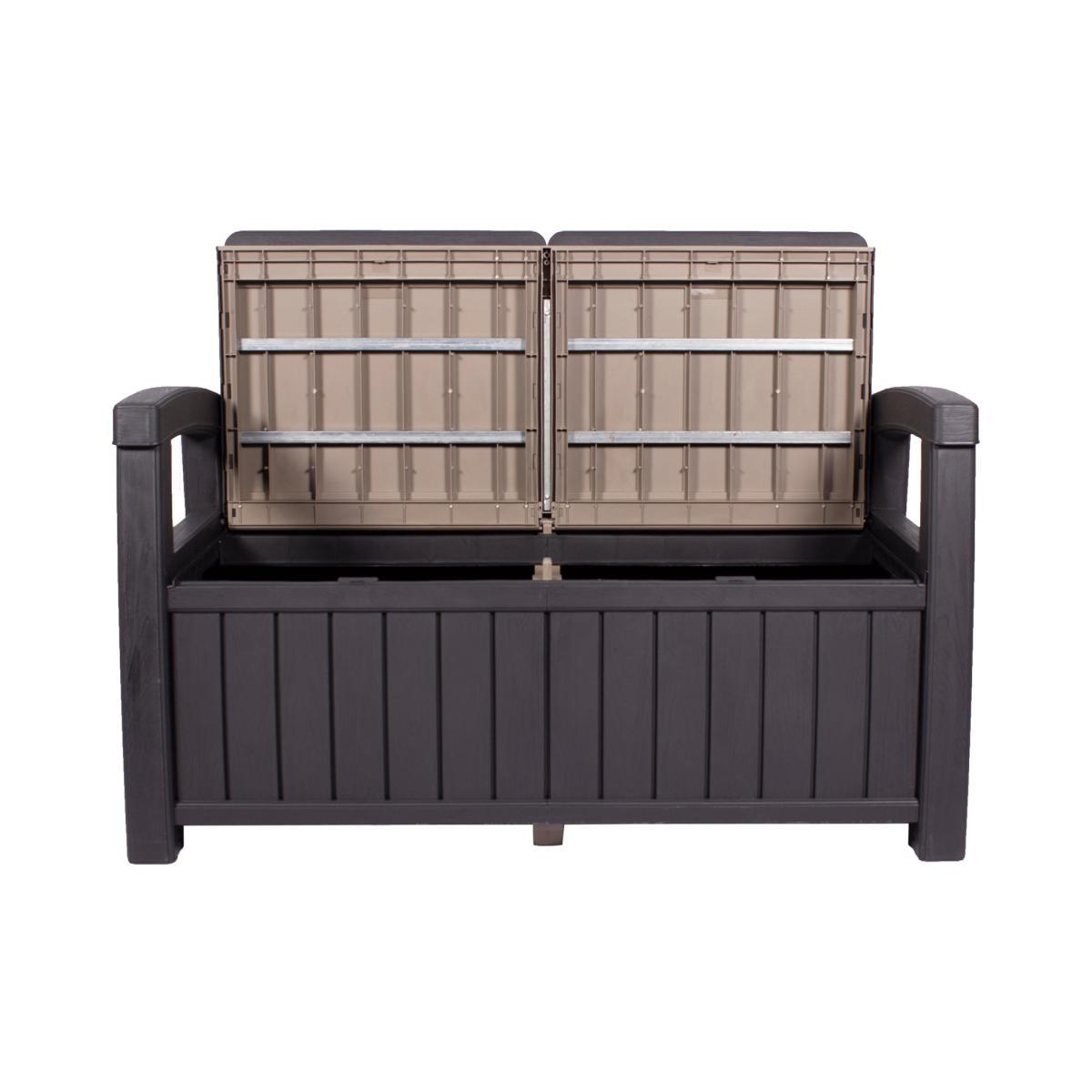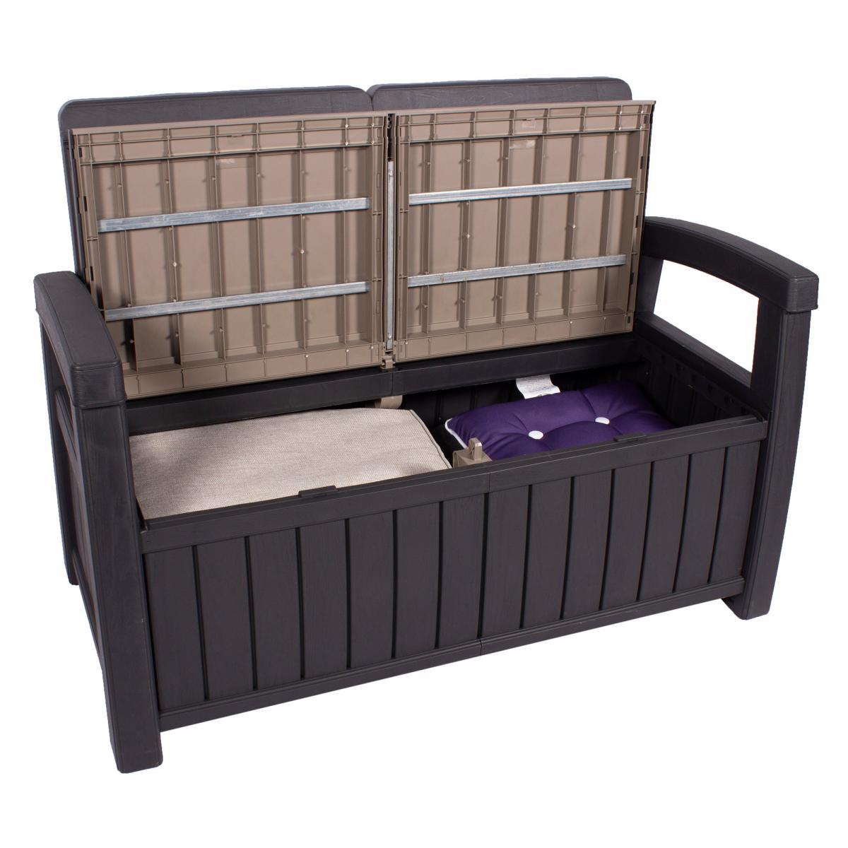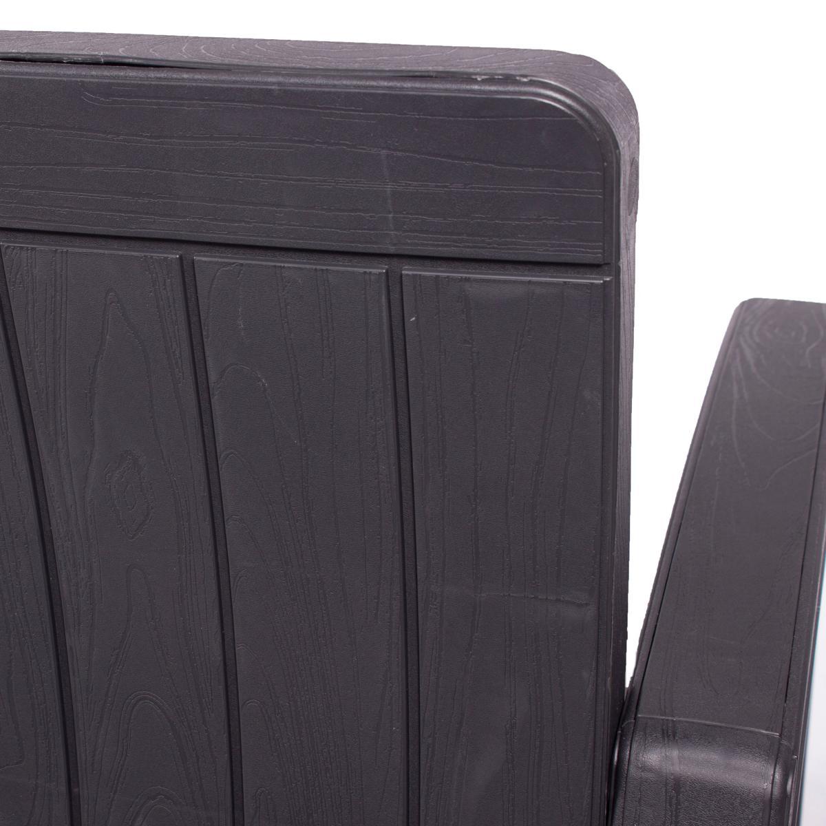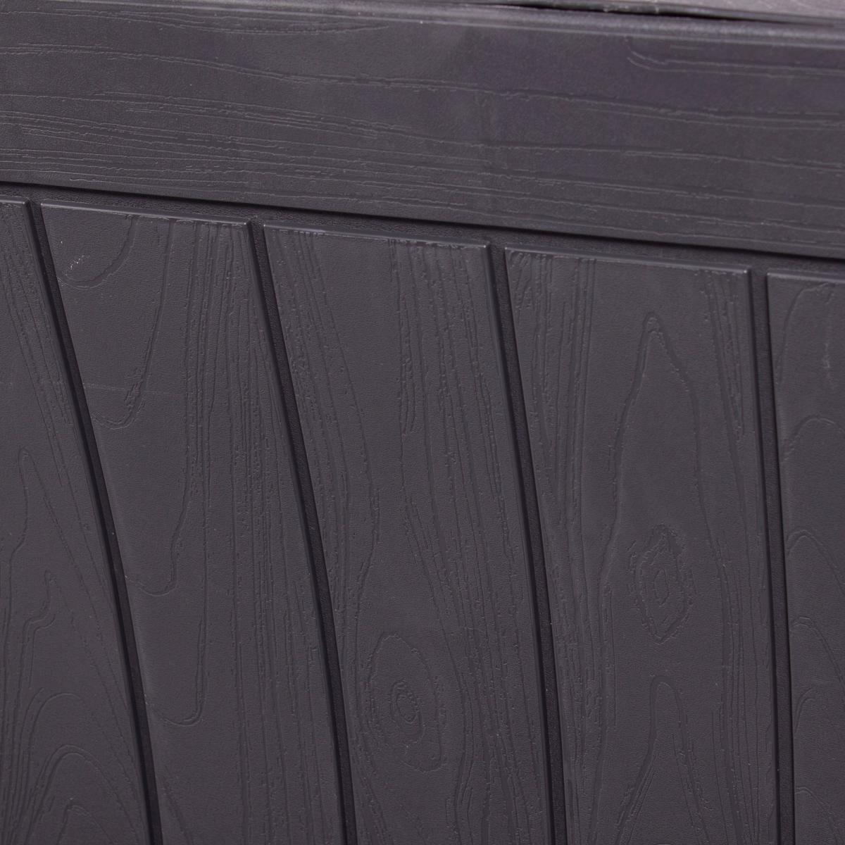 The perfect storage solution for your garden, this stylish storage bench is comfortable and practical. Boasting a modern wood grain effect, this bench is the perfect combination of classic and contemporary. This bench has a storage space inside for seat pads, cushions, footballs, and more. This bench is made with 100% recyclable polypropylene, making it the perfect addition to your garden.