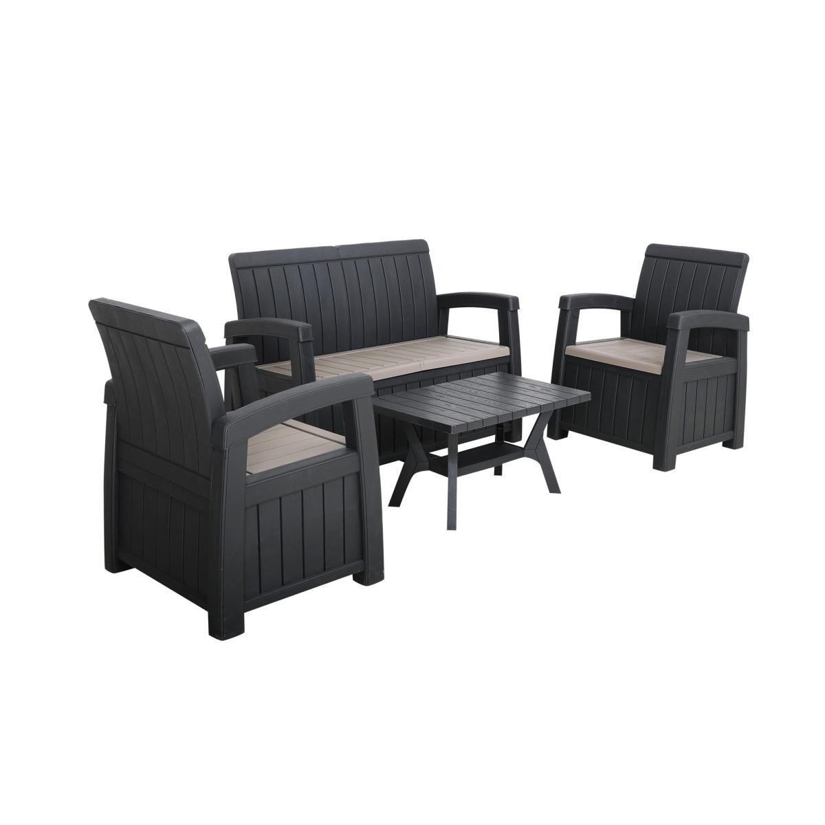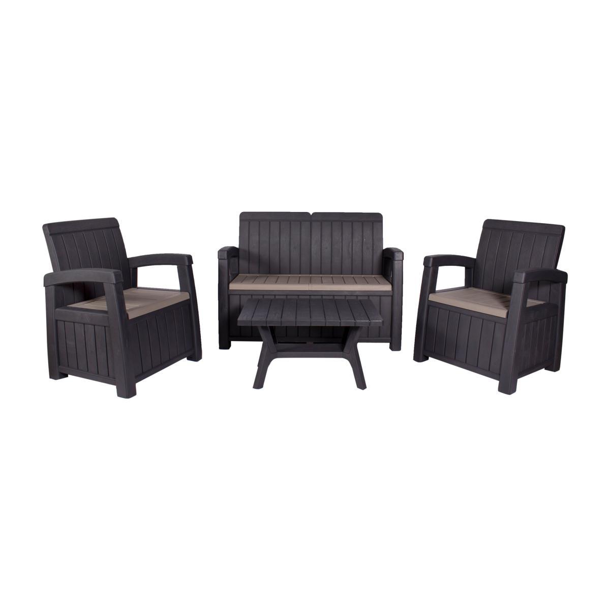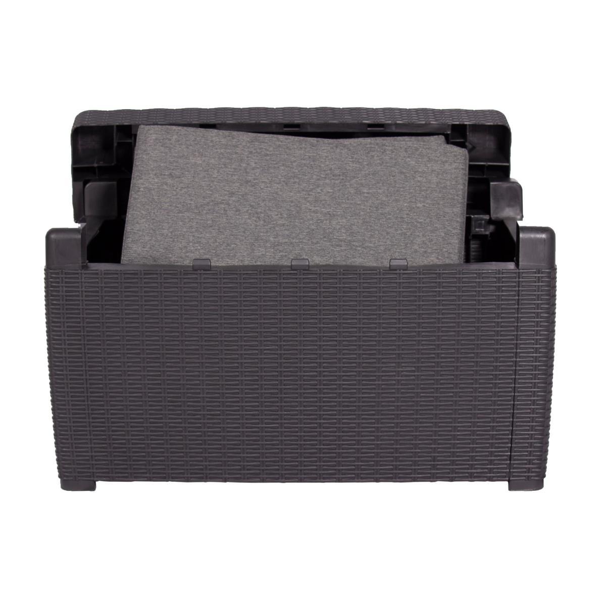 Relax in style this Summer with this Faro conversation set. With beautiful cushioned chairs and sofa, this set is extra comfortable and the storage table adds a simple storage solution to your garden. The set is constructed from polypropylene, making it durable and perfect for any garden. This set is made with 100% recyclable polypropylene, making it the perfect addition to your garden.