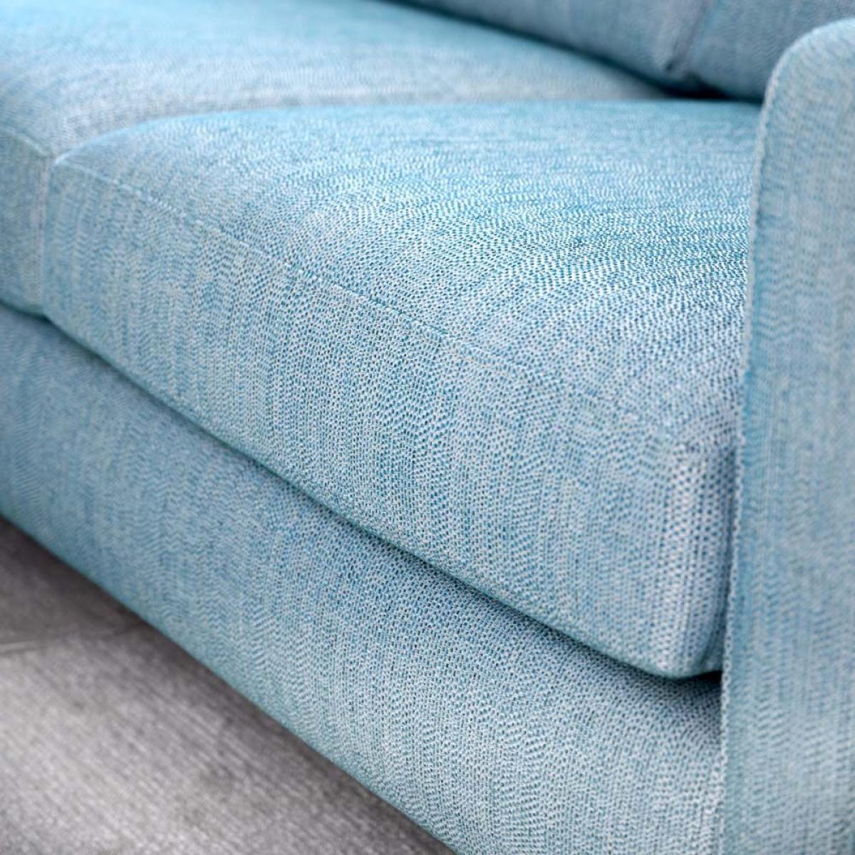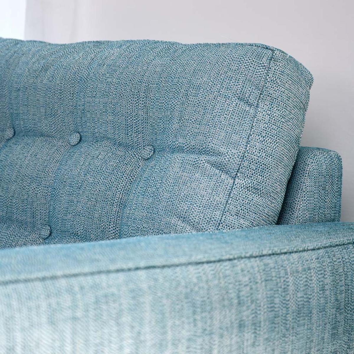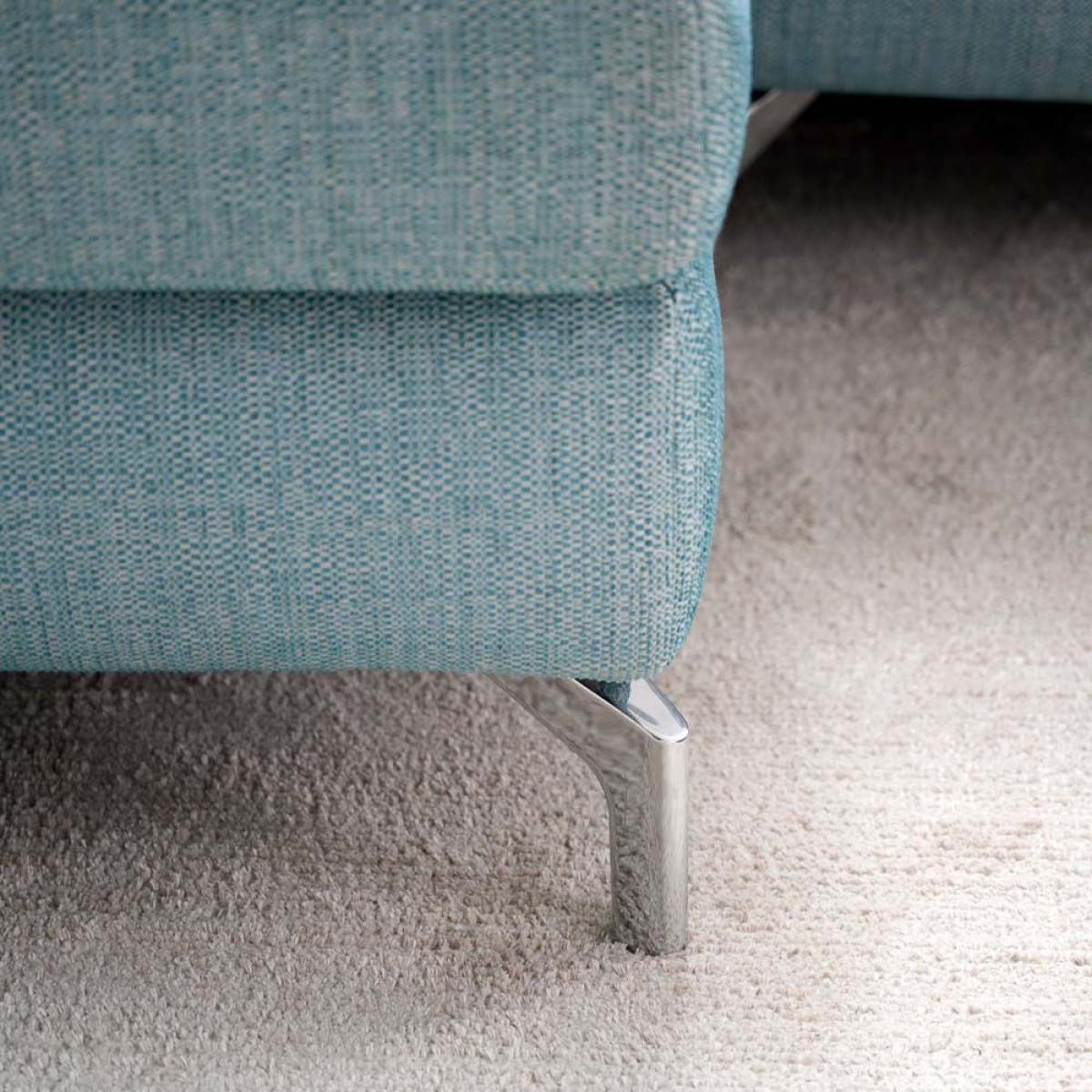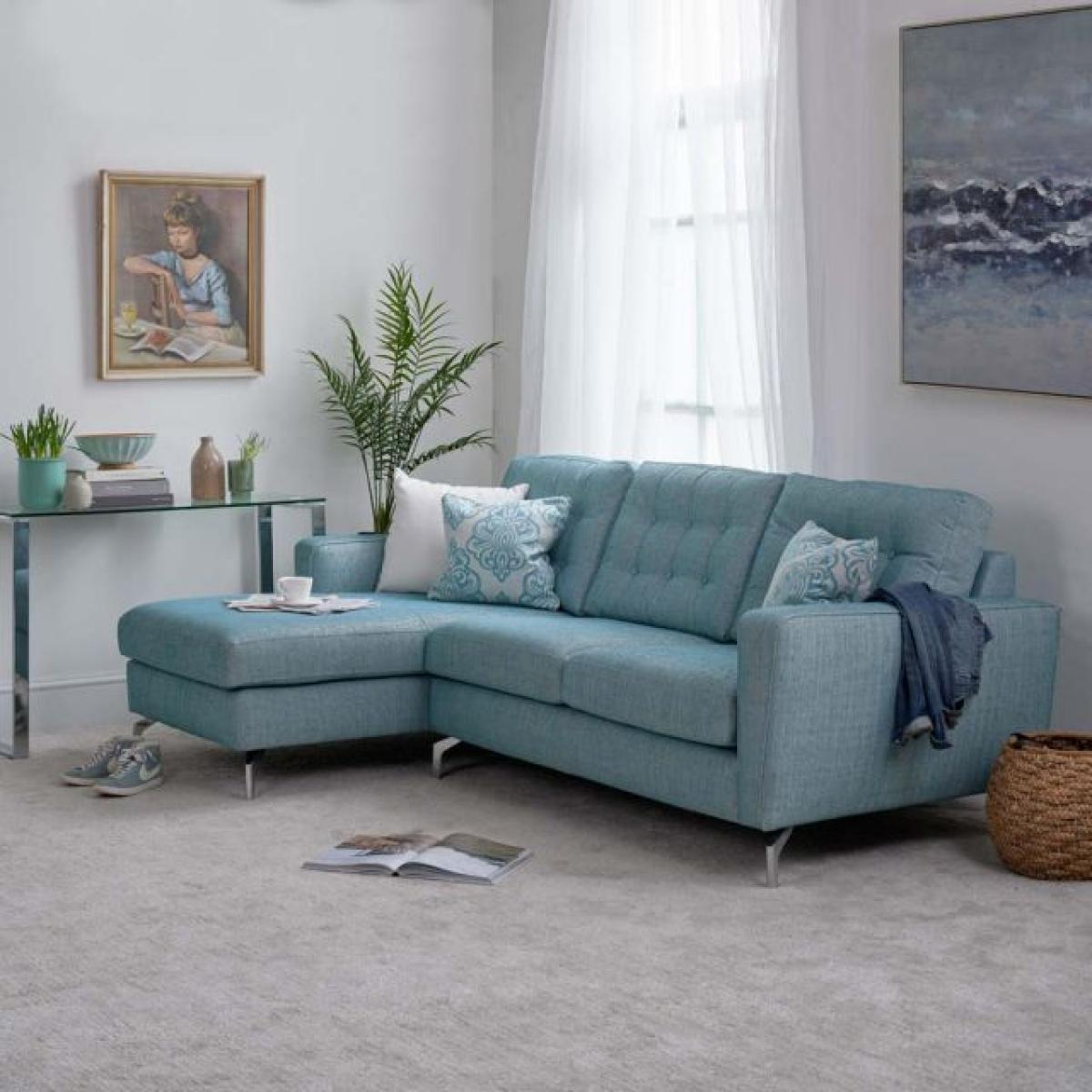 The Faro Corner Sofa is a great addition to the home. It's generous chaise section is perfect for relaxing with your feet up. The modern lines of the Faro Corner Sofa make this sofa right at home in a more contemporary setting, however the buttoned back cushions offer a nod to the traditional to allow this sofa to suit many home styles. Available here with chrome feet and in this stunning blue textured fabric. More fabric options coming soon.