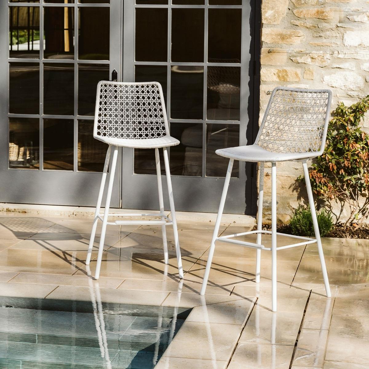 I love this bar stool for its clean, neutral aesthetic that pairs effortlessly with a variety of outdoor settings. Its simple design works particularly well in contemporary or coastal-inspired gardens, adding a light and breathable feel. To style it effectively, consider pairing with contrasting textures-such as a wooden table or a colourful outdoor cushion-to create visual interest. Practical tips include using this stool around a high garden table or bar area for casual, versatile seating, and opting for weatherproof accessories to keep it looking fresh season after season. Its understated design makes it adaptable for both minimalist terraces and more eclectic outdoor spaces.
