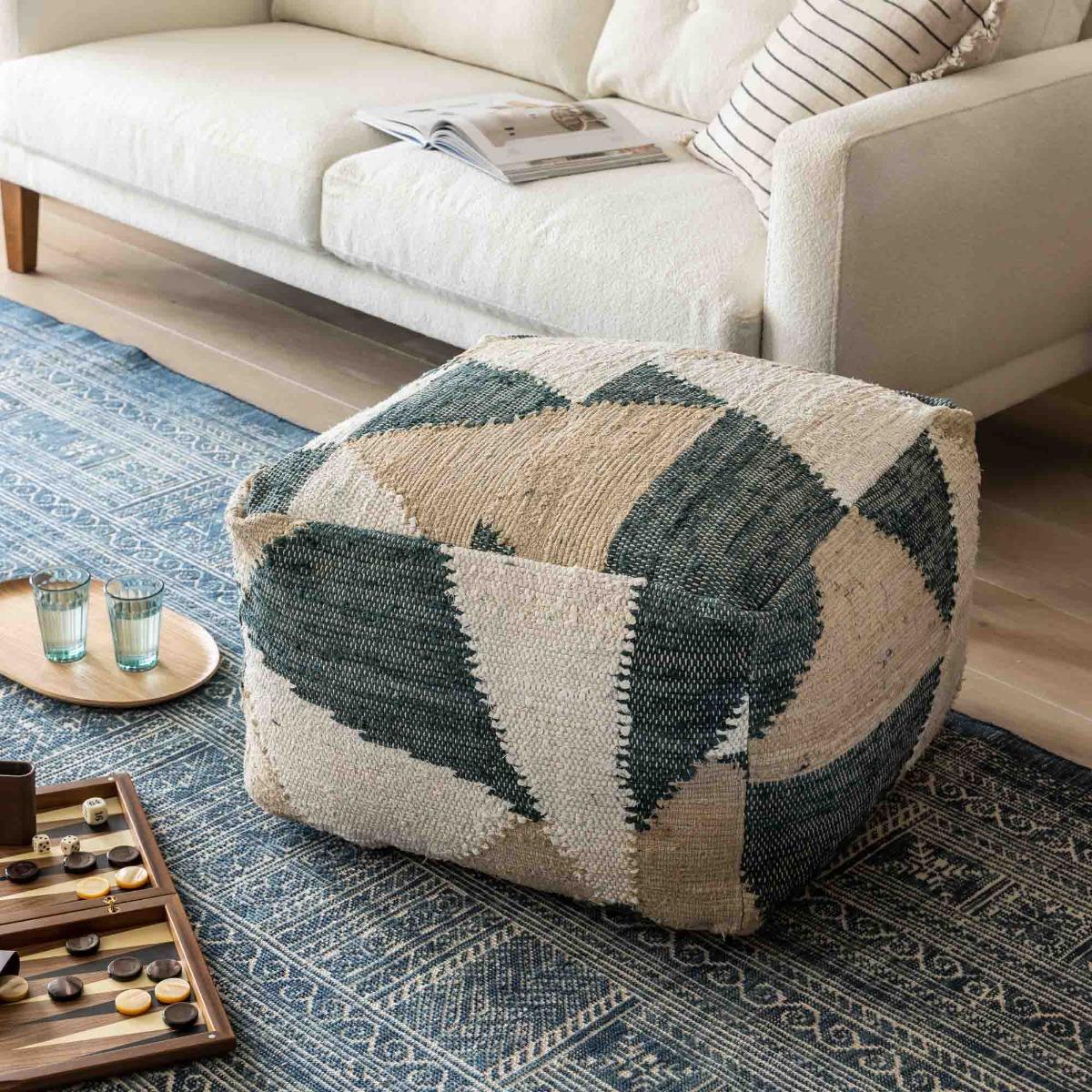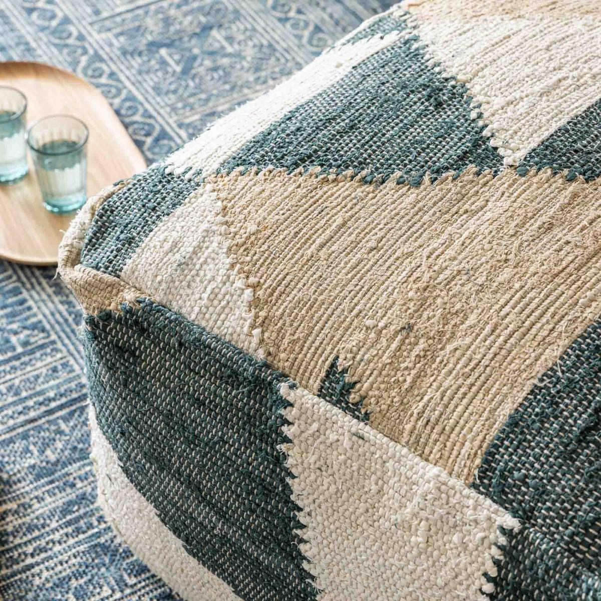 Add a statement both indoors and out with our abstract designed Faro Floor Cushion, which features a distinctive and playful pattern, inspired by Indian rag rugs. Its black, sand, and string colouring matches natural or monochrome interior schemes. Ideal as extra seating in the living area or bedroom, it can also be taken outside on a sunny day – just remember to bring it in when you come inside. Its firm filling also makes it a multi-tasker, doubling up as a footstool or side table, adding a multifunctional and fun element to your space.