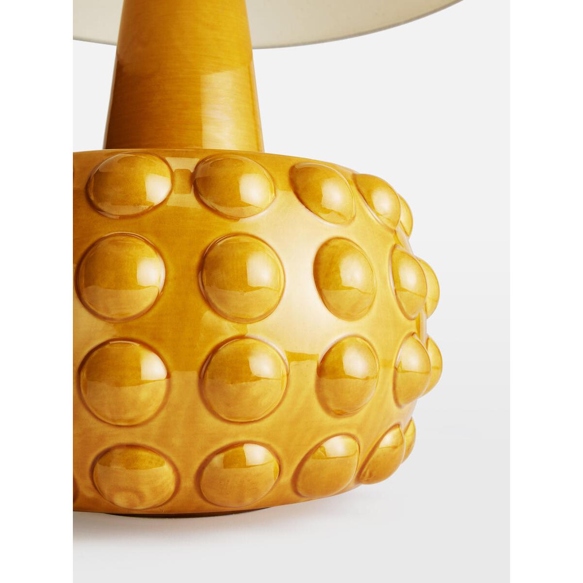 This Faro lamp in mustard is a fantastic choice for adding a pop of colour and personality to a variety of interiors. I love how its playful, textured base grounds the space and lends a modern, fun edge. It works particularly well in contemporary, eclectic, or even retro-inspired rooms, where colour and bold design details are welcome. Practical styling tips include pairing it with neutral palettes to let the yellow pop, or using it as a statement piece on a side table or bedside to add warmth and visual interest. Its compact size makes it versatile for smaller spaces, shelves, or surfaces that need a touch of character without overwhelming the room.