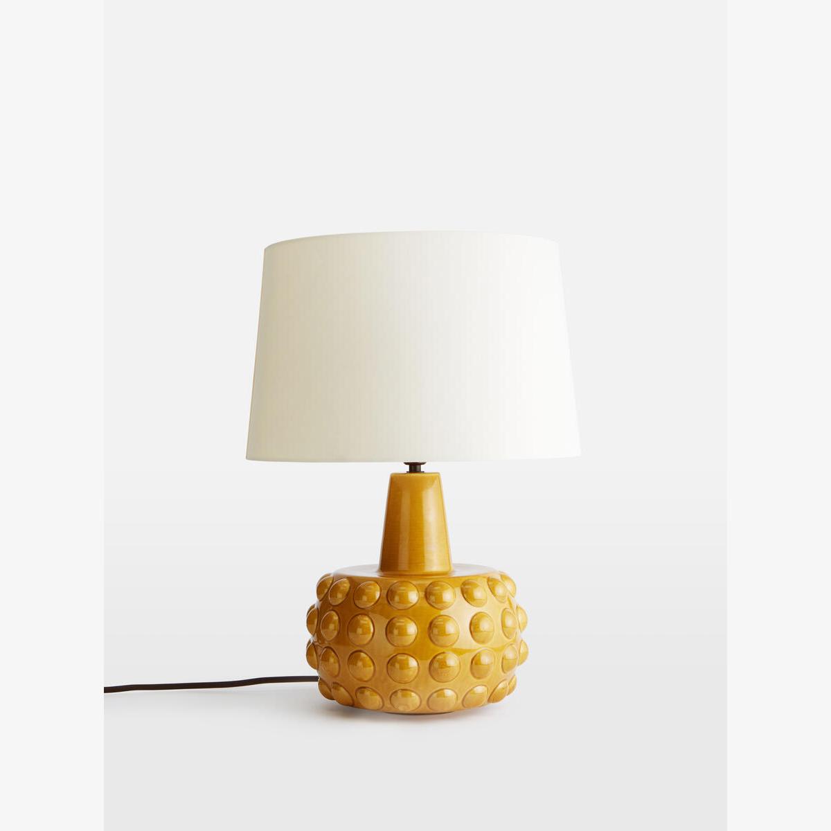 The Faro ceramic table lamp is handcrafted in Portugal and characterised by a short, rounded base with oversized, dotted detail. Washed with an artisanal glaze, this dimmable lamp is complete with a soft, natural linen shade. Pair two together to create an ambient glow, reminiscent of the bedroom lamps in Soho House Rome. • Ceramic table lamp • Dimmable • Linen shade • Glazed rounded base with textured dots • Made in Portugal • Inspired by Soho House Rome