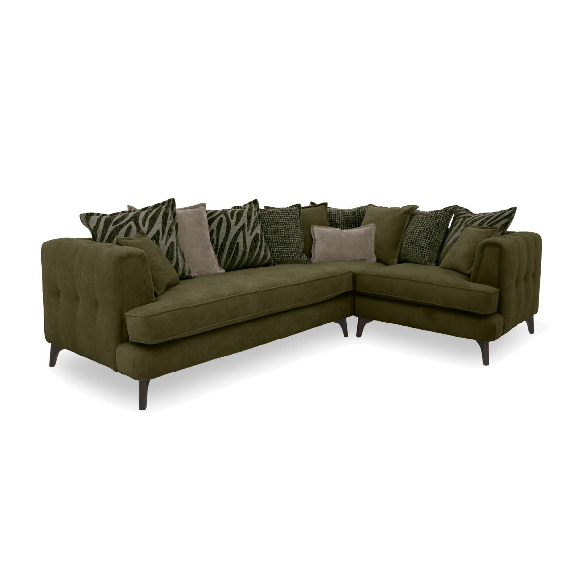 If you’re looking for comfort, may we introduce you to our Farrah collection? Generous in both size and sumptuousness, this range is no slouch on the style front either. Available in both classic back and scatter back styles, Farrah has Ultimate Flex plumpness-guaranteed seat cushions that ensure your sofa will feel every bit as luxurious as it looks. There’s a glam edge to Farrah in the curve of the arm and the understated buttoning motif that’s echoed on the back cushions of every classic back sofa. From a large corner sofa to accent cushions, this collection brings home well-crafted style and comfort. Made by hand in the UK exclusively for Furniture Village. It’s the combination of bench-style seating and all those feather scatters that make this corner sofa the ultimate choice for style and comfort. Only at Furniture Village. Why you'll love it Fabulous Farrah features superb modern comfort and glam details. High-performance Ultimate Flex seat cushioning with our 5-year plumpness guarantee. This scatter back corner sofa has bench-style seating for more relaxed lounging. 12 feather-filled back cushions – 9 large scatters, 2 small scatters and a bolster. Back cushions are reversible for longer sofa life. Modern button detail on back cushions and outer arms. Choice of light or dark wood feet. Wide choice of fabric upholstery options. Choose a left-hand facing or a right-hand facing corner sofa to suit your space. Also available as a classic back sofa. Additional feather-filled bolster and scatter cushions are available separately. Handmade in the UK exclusively for Furniture Village. This large scatter back corner sofa is part of our Farrah range. What you need to know Medium comfort level. Seat suspension: sprung. Seat cushioning: Ultimate. Flex. Cushioning is not reversible. Back support: elasticated webbing. Scatter back cushions: feather. Back and feet are removable for easier access. To maintain cushion shape and fullness, be sure to plump daily. Unzip back cushions halfway prior to plumping to allow air to circulate. Rotate seat cushions for more even wear. Some fabrics can show wear on areas of more use or in direct sunlight. Clean regularly using a soft brush or vacuum with the curtain attachment. Deal with any spills promptly. Professional cleaning advised for oil- and grease-based stains. Please read our upholstery care guide for more advice. Item code: FARRRCSB--006
