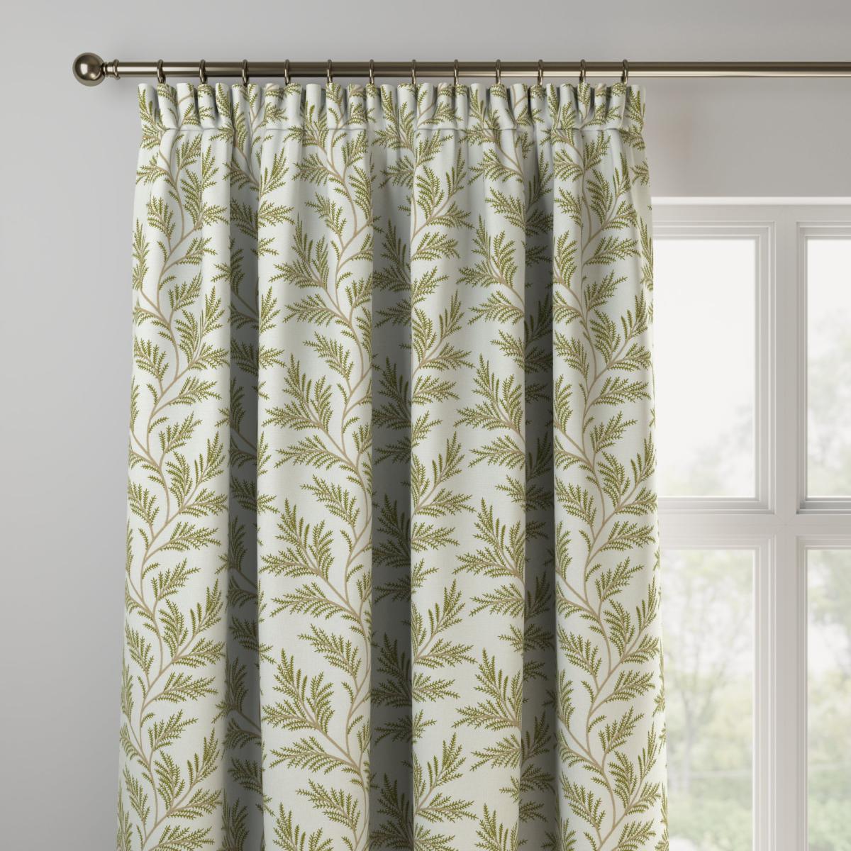 * Soft and durable Polycotton composition * Detailed, embroidered leaf design * Available in a selection of header and lining options * Coordinating Made to Measure and Made to Order items available to purchase separately Inspired by nature, the Farrier curtains feature a beautifully embroidered leaf design that adds depth and texture to your décor. Available in a selection of calming colourways, these curtains bring a serene, organic feel to any space. Crafted from a durable polycotton blend, they combine style with everyday practicality. Please note: If your measured width is over 124cm your curtains will come with a fabric join to provide the full width required.