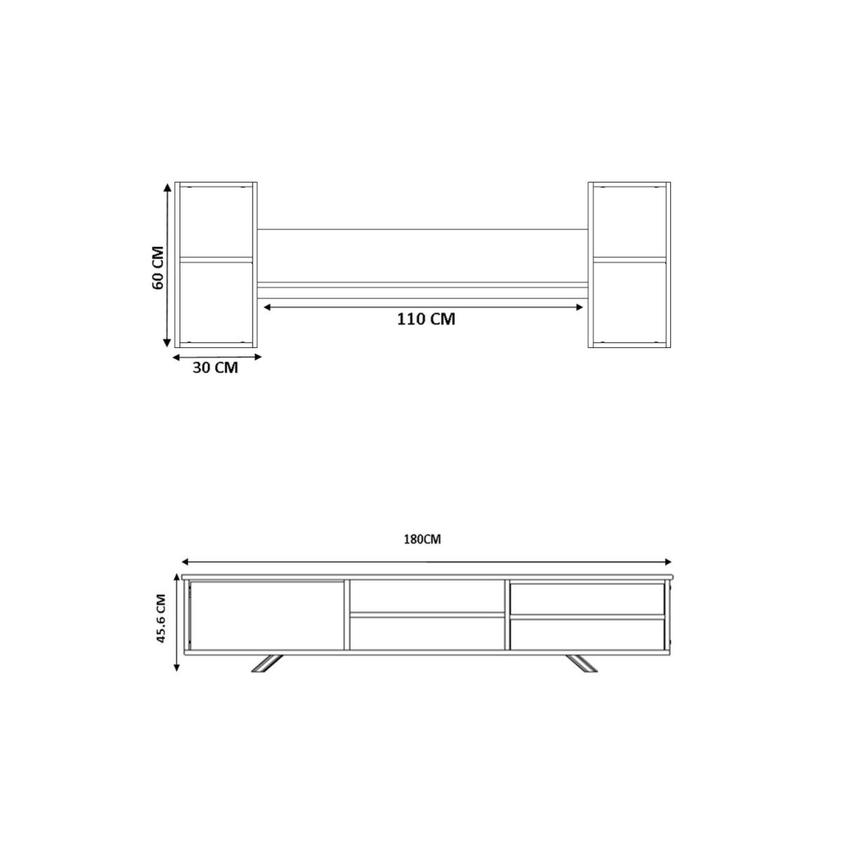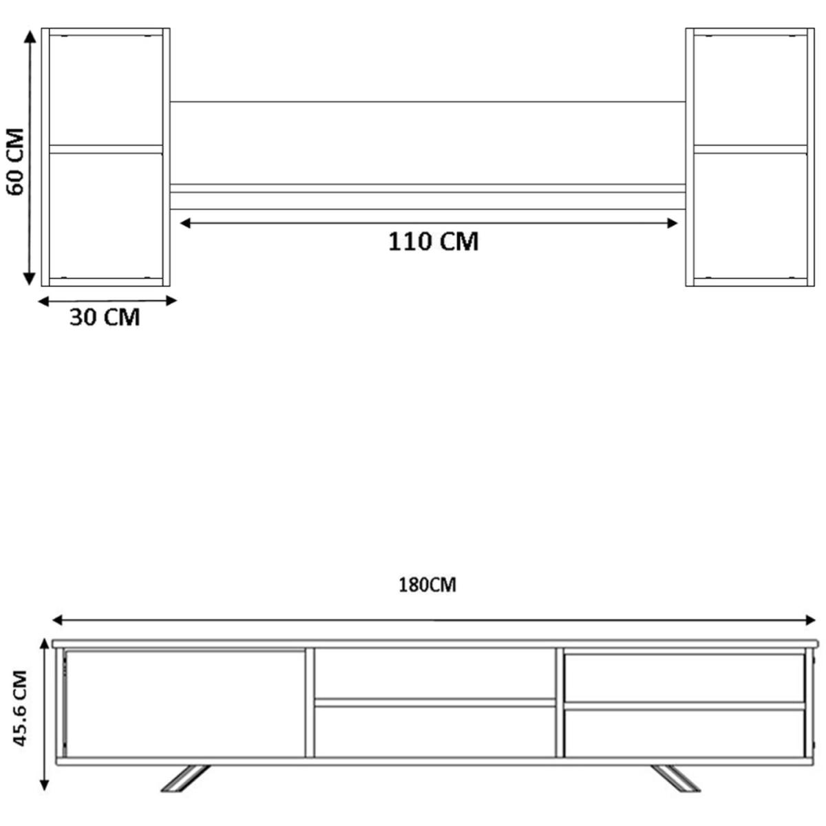 Contemporary TV / Media cabinet featuring plenty of shelving, 2 door 1 drawer storage and a smooth surface for your flat screen TV. The unit comes with matching large wall shelf.