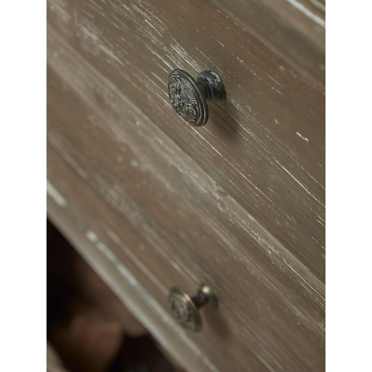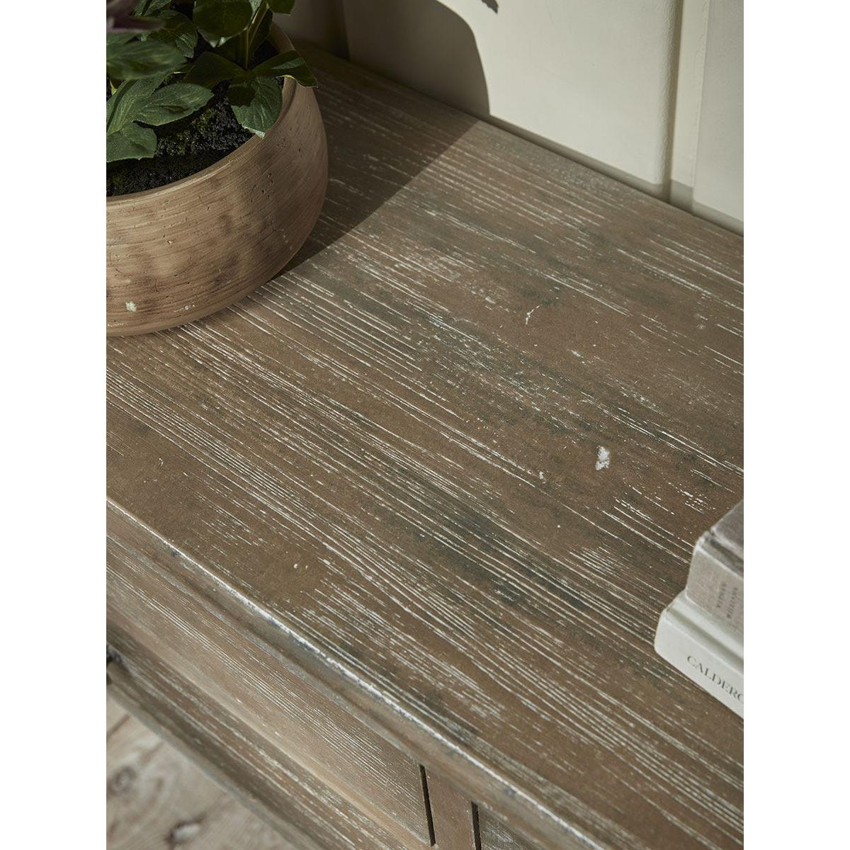 Adding individuality and character to your space, our Farum Sideboard and Shelf is inspired by a traditional style. Crafted from recycled pine, this unit has a heavily distressed finish for a feel of rustic charm and a farmhouse style that creates a cosy cottage feeling in your home. With shelves to display your favourite accessories and four drawers finished with delicate metal handles that have vintage appeal, this unit is the perfect addition to our English Rustic trend.