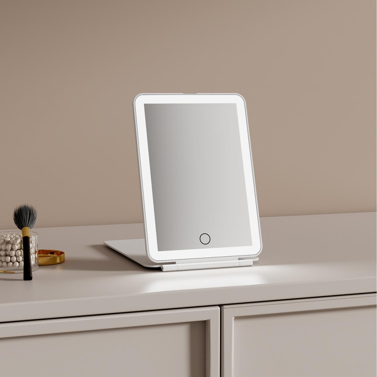 Achieve a flawless finish wherever you are with the FASCINATE Rechargeable LED Travel Makeup Mirror. Perfect for both your daily beauty routine and on-the-go touch-ups, this versatile mirror features 72 bright LED lights offering three distinct colour modes crisp white, natural daylight, and warm ambient. Easily customise your illumination with the sensitive touch-dimming function, ensuring optimal lighting for any occasion or environment. Its compact, freestanding design and integrated USB-rechargeable battery make it an essential and convenient companion for every beauty enthusiast.