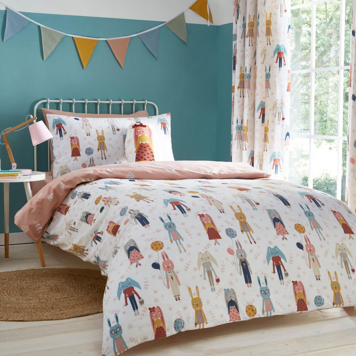 Fashion Bunnies Pink 100% Cotton Reversible Duvet Cover and Pillowcase Set Light Pink