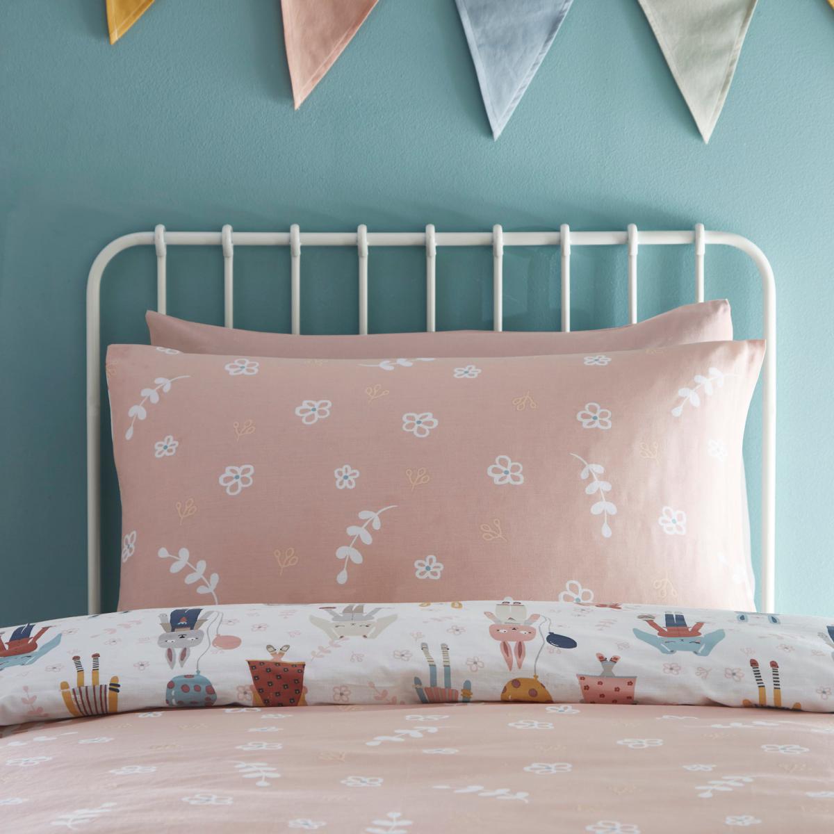 Boasting a trendy and quirky cute fashion bunny printed design, this bedding set would add a stylish touch to your little one's bedroom. With a fully reversible design, this bedding set has a bunny front and a ditsy flower reverse. Made from 100% cotton, this bedding is soft durable and machine washable. Coordinating cushions and curtains are also available. This collection is verified by OEKO-TEX® and independently tested for harmful substances as well as manufactured using sustainable processes under socially responsible working conditions. MADE IN GREEN by OEKO-TEX® is a unique product label to trace the countries and production facilities - search the product label for more information.