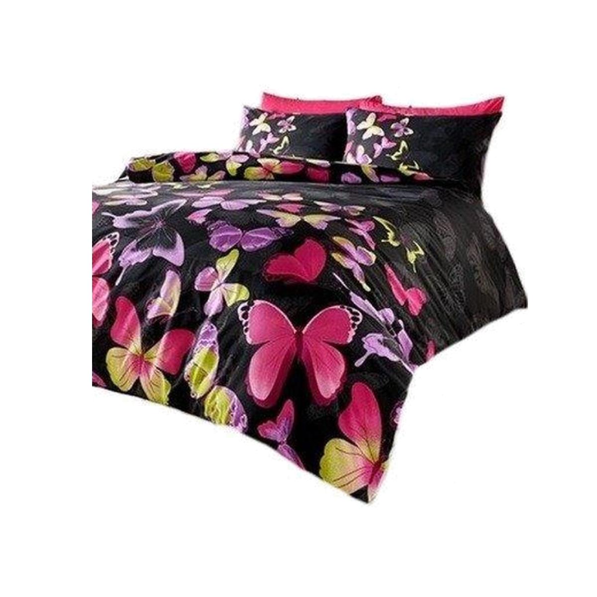 Fashion Butterfly Black Reversible Duvet Cover with Matching Pillowcase - Black