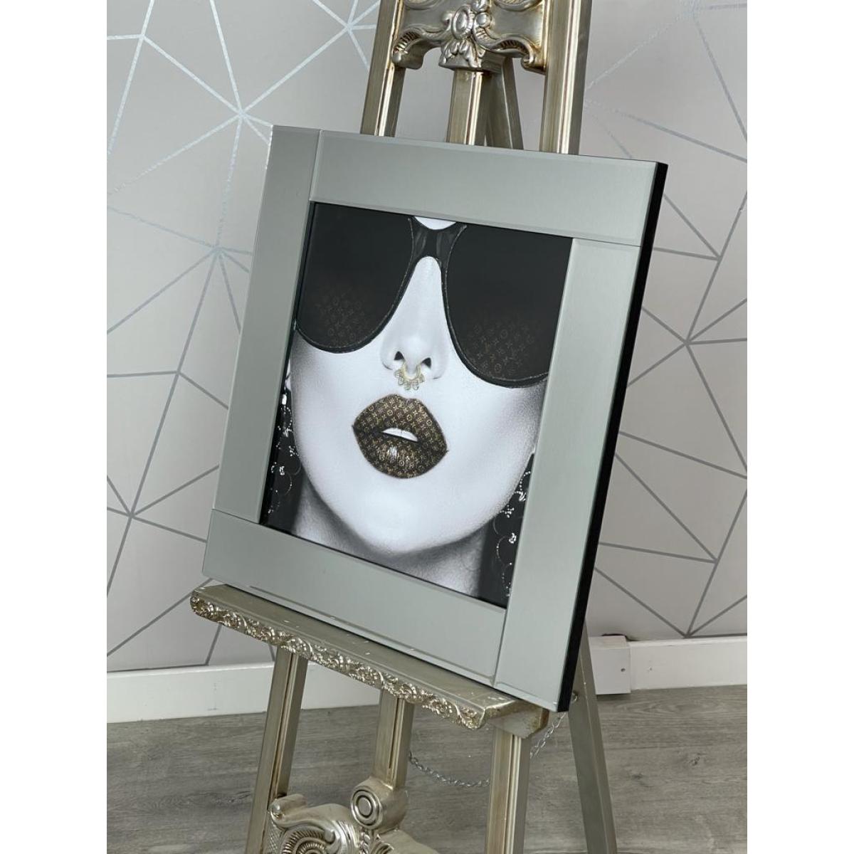 Stunning wall art of designed lip designs with mirrored frame. Add style, colour and character to any room with this stunning piece featuring a subject with patterned sunglasses and lips. Framed in a fantastic mirrored frame, adding an appealing touch of modern style! Perfect for living rooms and dining areas.