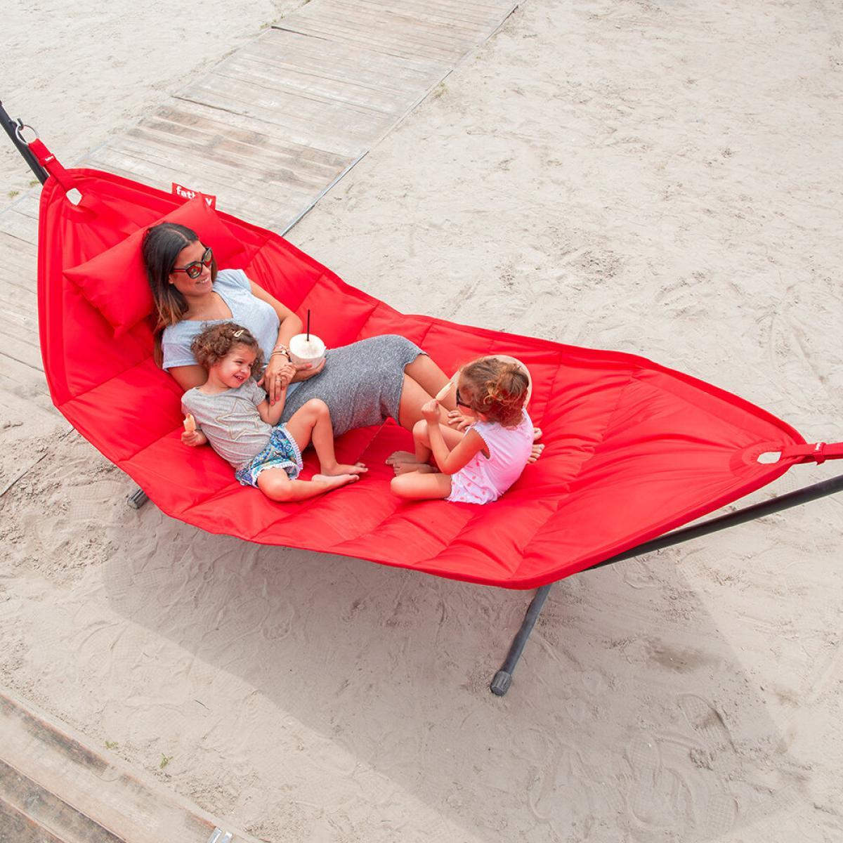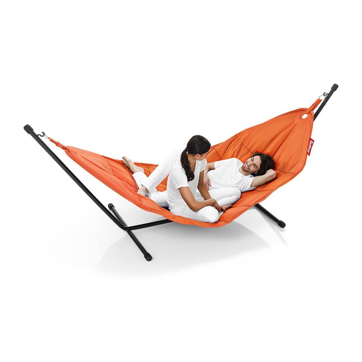 The trendy Fatboy hammock, is the ultimate in relaxation,whether you're sipping cocktails in the shade or taking a well-earned nap. The orange polyester hammock is filled with foam for ultimate comfort and is supported by a sturdy metal frame. You can fly solo or snuggle up with someone else; the Fatboy hammock can fit up to three people (maximum weight-200kg). With water and UV resistant fabric the colour never fades and with the dirt and moisture repellent fabric, it's easy to clean.