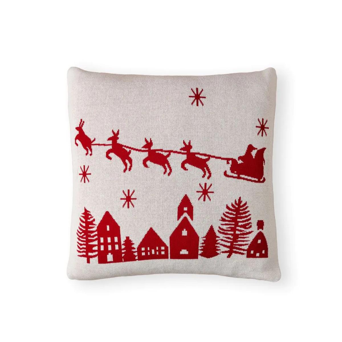Father Christmas on Sleigh Reversible Cushion, Red and White