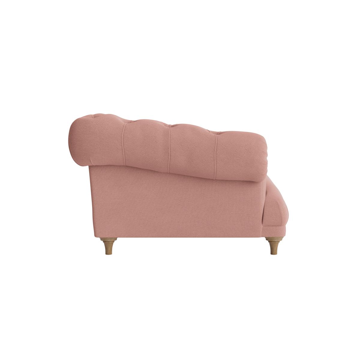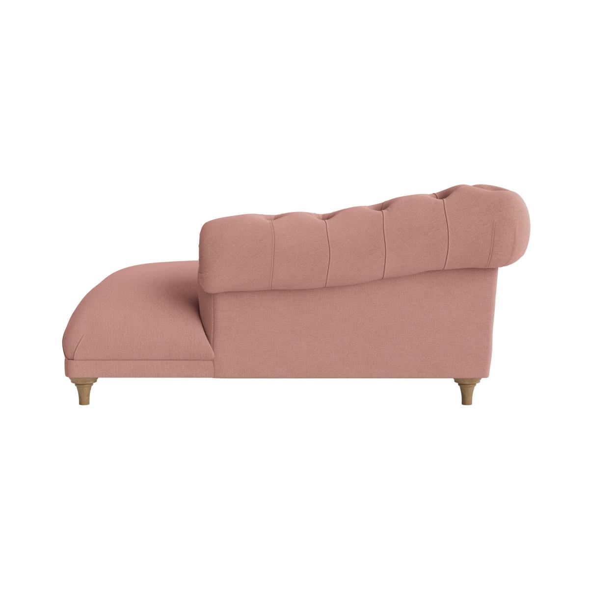 I love this chaise lounge for its classic yet playful design, making it a versatile piece that can add character to both traditional and contemporary spaces. Its tufted back lends a touch of sophistication, while the soft pink hue offers a welcoming, relaxed vibe. It works particularly well in cosy corners, reading nooks, or as a statement piece in a neutral living room. To style it effectively, consider pairing with throw cushions in contrasting textures or colours for added dynamism. Practical tips include placing it near a window for natural light or by a minimalist coffee table to enhance its lounge appeal. Overall, it’s an excellent choice if you want a comfy yet stylish statement that invites relaxation.