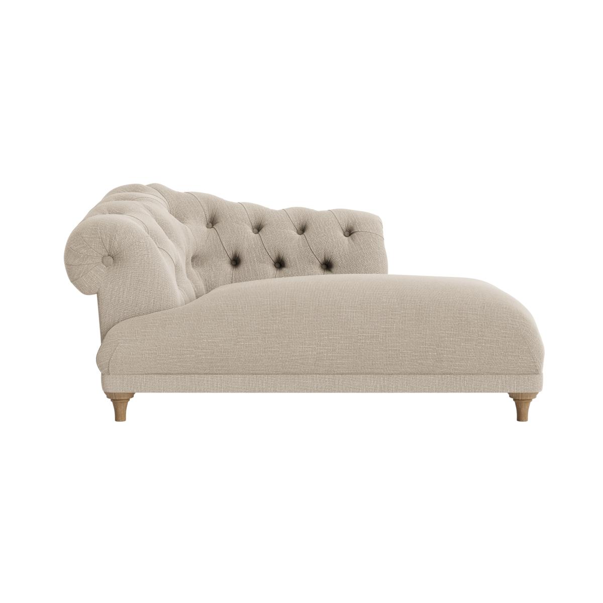I love this chaise long because of its classic yet versatile design-its neutral tone and subtly tufted back mean it can work in both traditional and contemporary interiors. It’s a great piece for adding relaxation and a touch of elegance to living rooms, guest rooms, or even a sophisticated reading nook. When styling, consider pairing it with layered textiles, such as patterned cushions or throws, to introduce colour and comfort. For a more modern feel, keep surrounding furniture sleek and simple, allowing the chaise to stand out. Practical tip: position it near a window or under good lighting for ultimate lounging or reading comfort.