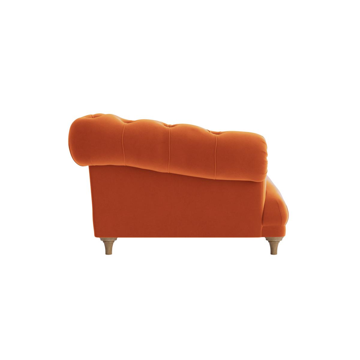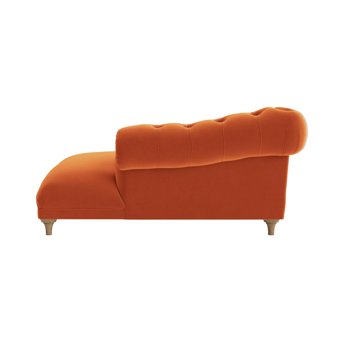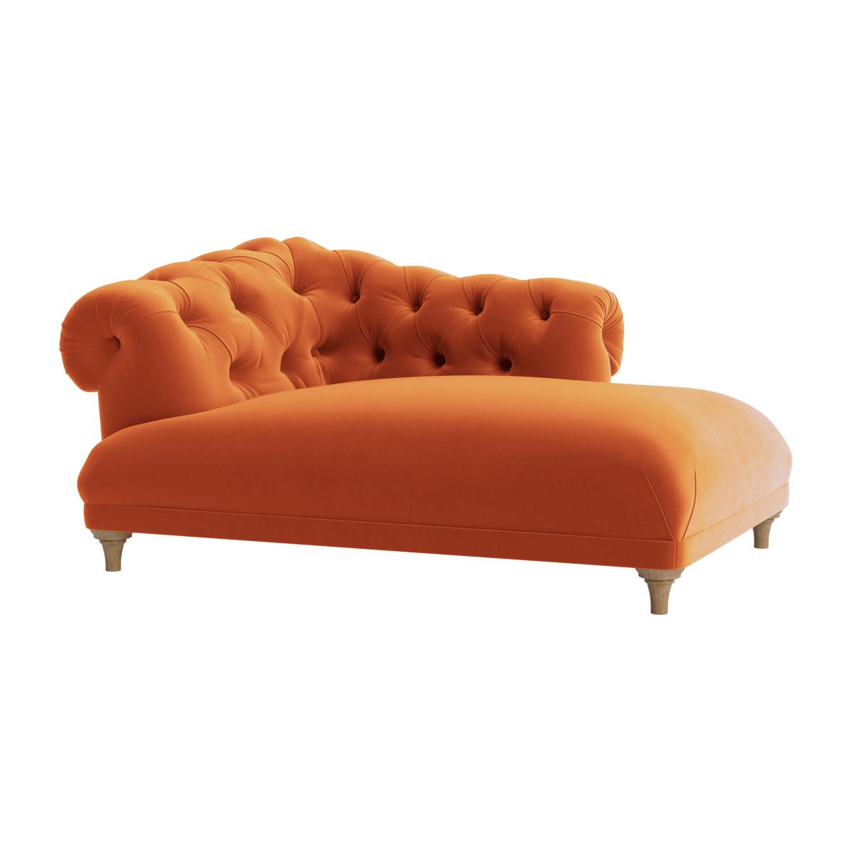 I love this chaise for its bold, vintage-inspired design that adds character to any space. Its deep button-tufted back and plush seat make it perfect for relaxed lounging, while the striking orange colour acts as a statement piece in eclectic or modern interiors. It's particularly well-suited for living rooms, dressing rooms, or even a cosy reading nook. To style it effectively, pair with neutral or complementary tones to let the chaise stand out, and consider adding textured cushions for extra comfort. Its versatile silhouette makes it a great anchor piece in both classic and contemporary schemes, bringing both colour and a touch of retro glamour to your decor.